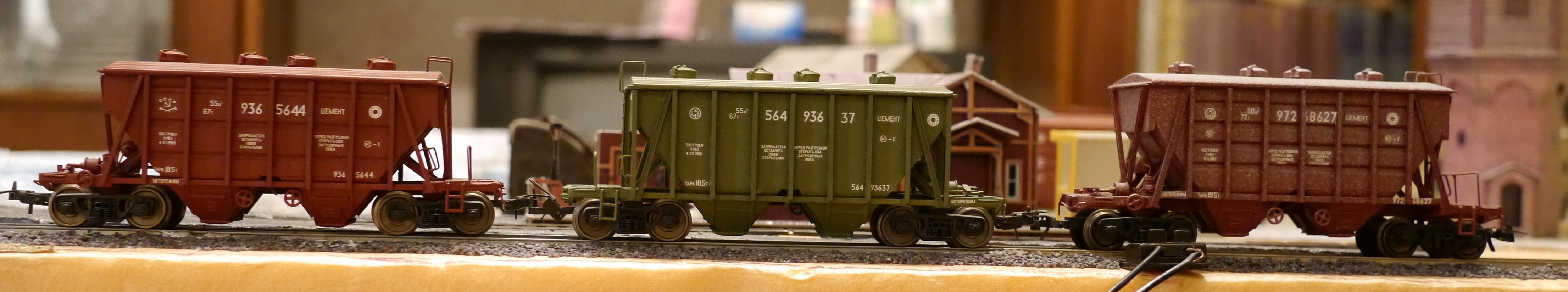 Поддерживаю это мнение.Muton писав:.... хопперы очень распространены на ЖД, начиная от 60-х и заканчивая современностью. Типично советские, очень узнаваемые. А с точки зрения покатушек позитивный момент - их габариты. Можно составить целый поезд из "цементников" и он не будет слишком длинным....