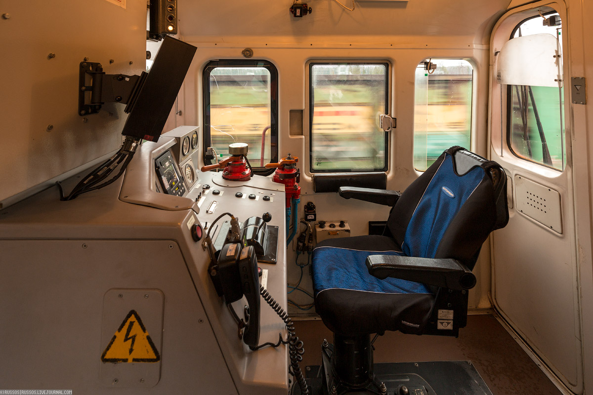 37. Очень непривычно видеть, как тепловоз едет сам. Задает скорость, тормозит пневматикой, регулирует обороты и прочее.