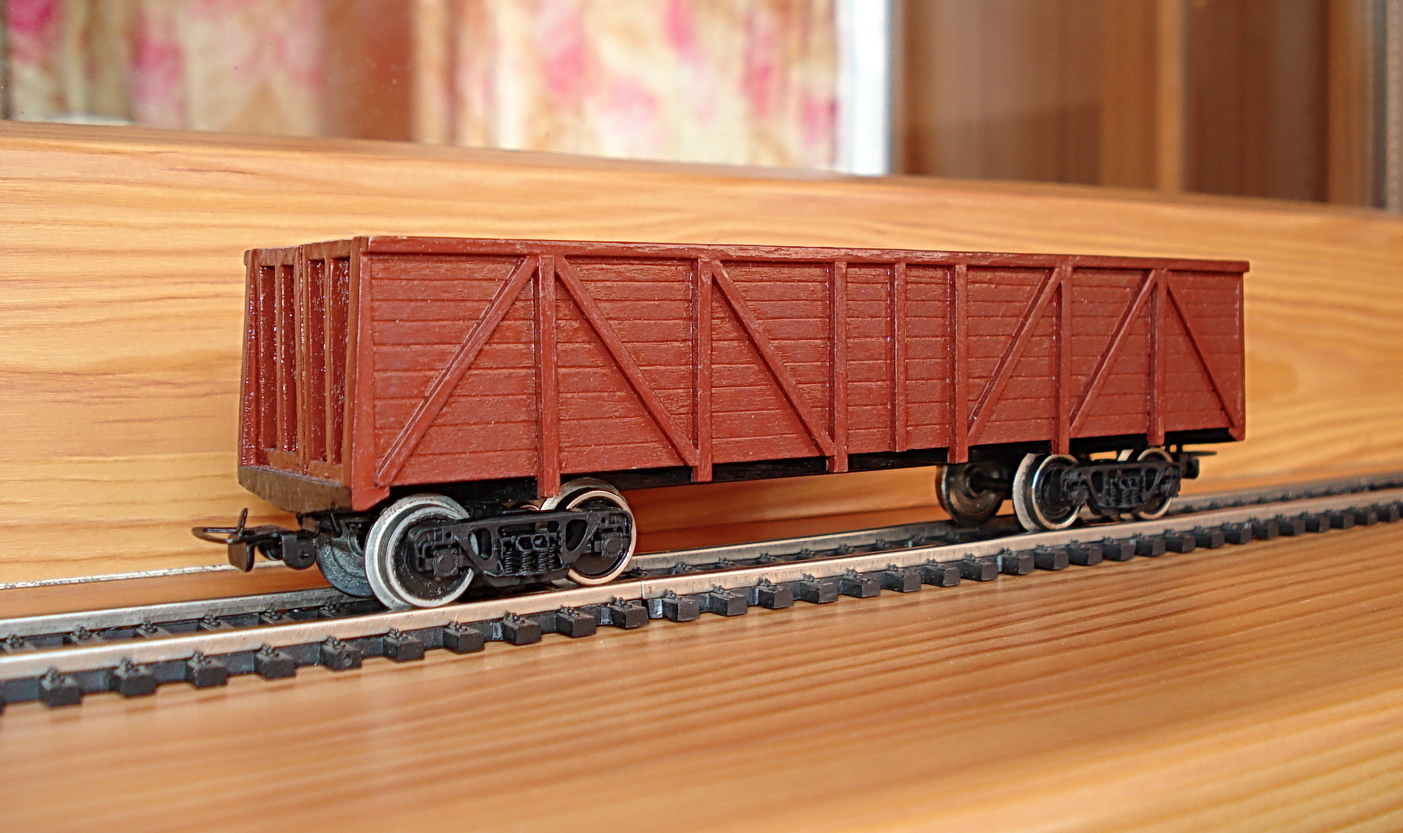 Полувгаон СЖД коричневый деревянный что ли? или так пластик рельефно обработан под дерево ?