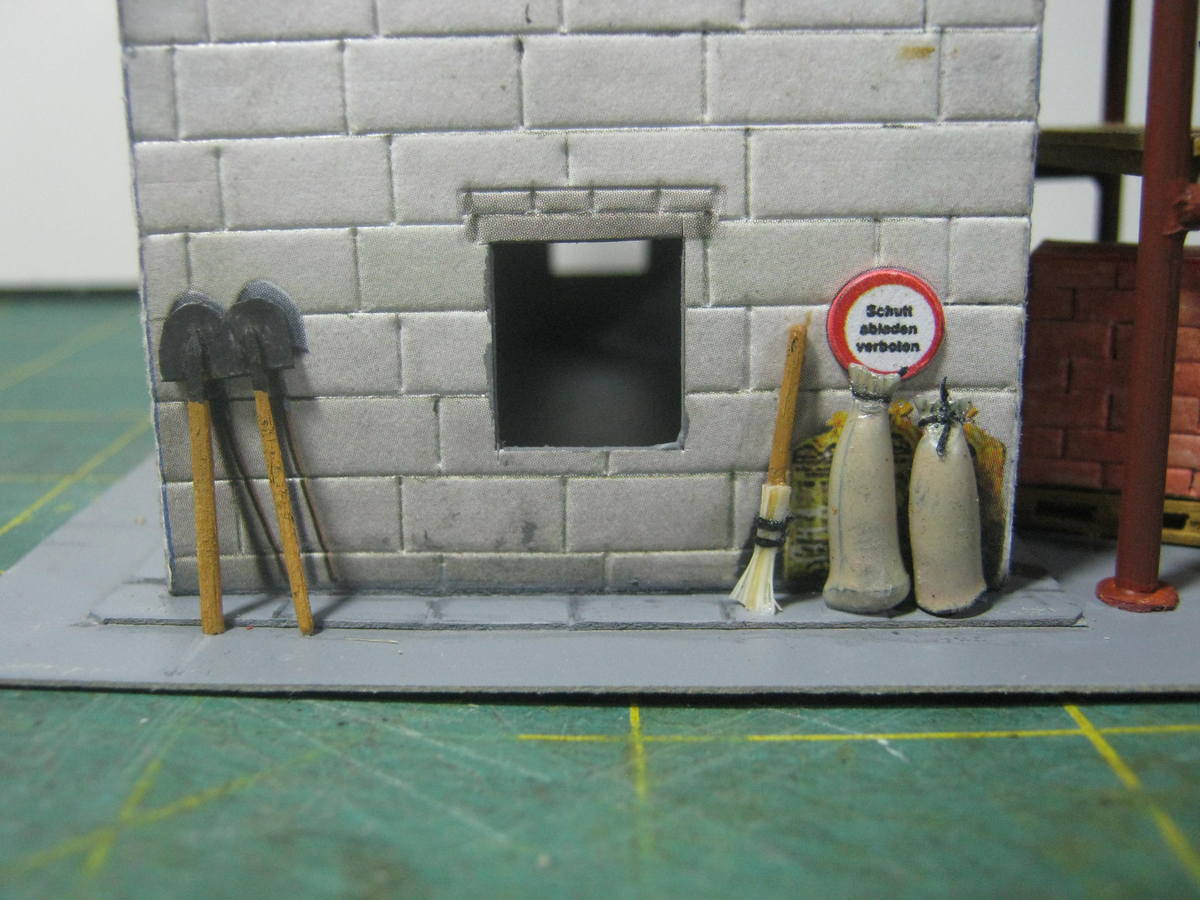 А я издеваться над собой не буду. Достаточно, что сцепив зубы прилепил к стенам лопаты черенками вниз в угоду чуждой идеологии... Литник на свечке. Немного непропорциональные потому, что литник тонкий. А делать пришлось повыше, чтобы прикрыть рисунок на стене.Stinky писав:А вот исполнение мешков это как?