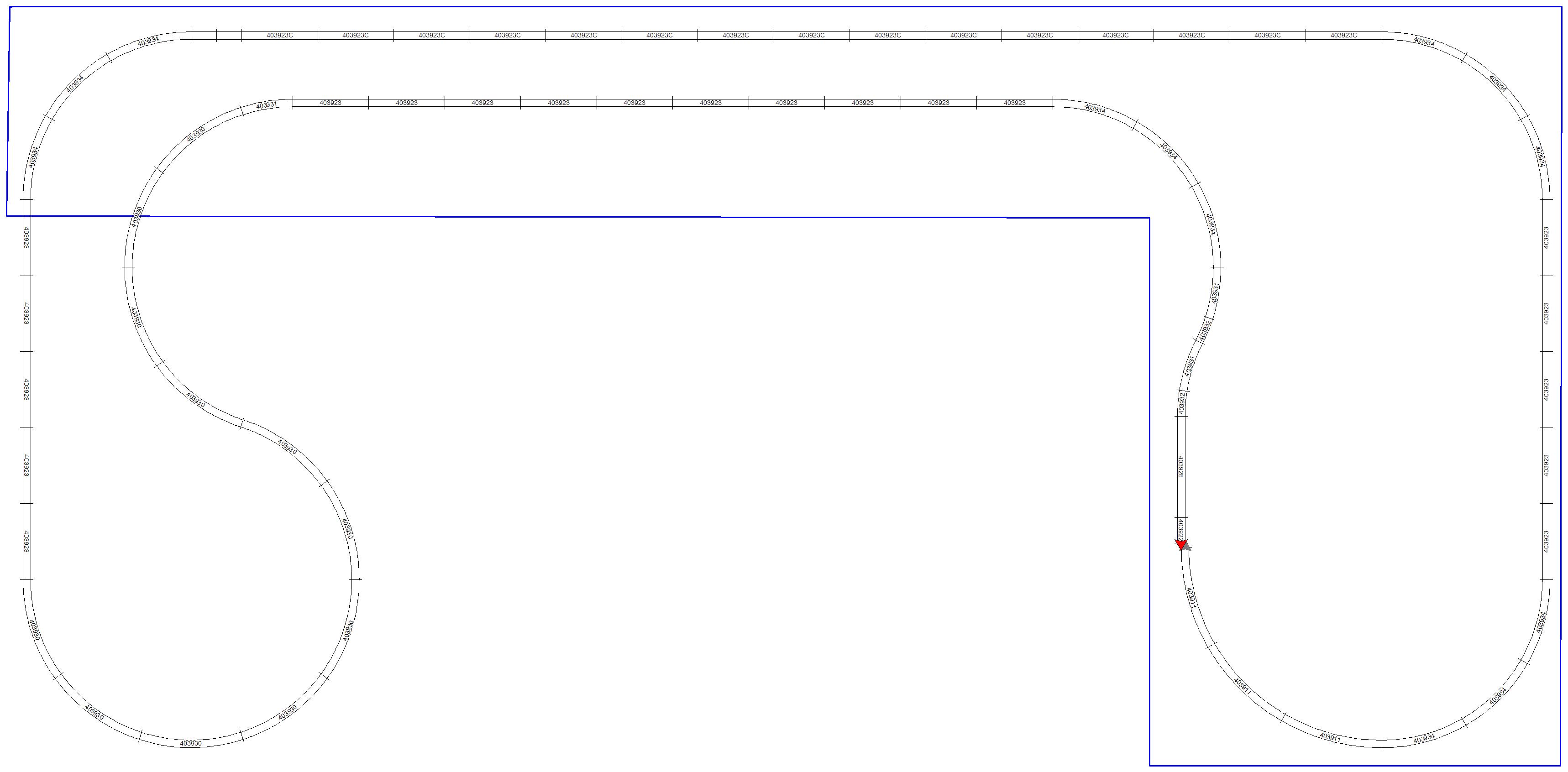 вт вчера выложил рельсы Primex чтобы понять на сколько хватит. малый кусок внутри большого практически пойдет на другую сторону как петля, а так хотелось двупутный ) если же делать просто прямоугольный участок вдоль длинной стены, то есть эти 3 стола по другому поместить, то можно было бы получить овал, но мне что-о так не нравится )