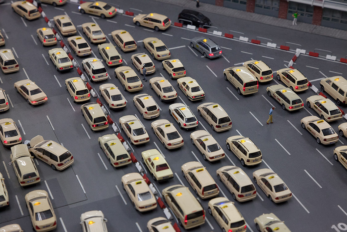 Сначала представлю фотографии городской инфраструктуры, окружающей аэропорт - парковки, стоянки такси, транспортные магистрали, рестораны, офисы, терминалы самого аэропорта поражают не меньше ( а может, и больше), чем летное поле с взлетающими и садящимися самолетами. Трудно поверить, что это все не настоящее и уменьшено в 87 раз по отношению к оригиналу.