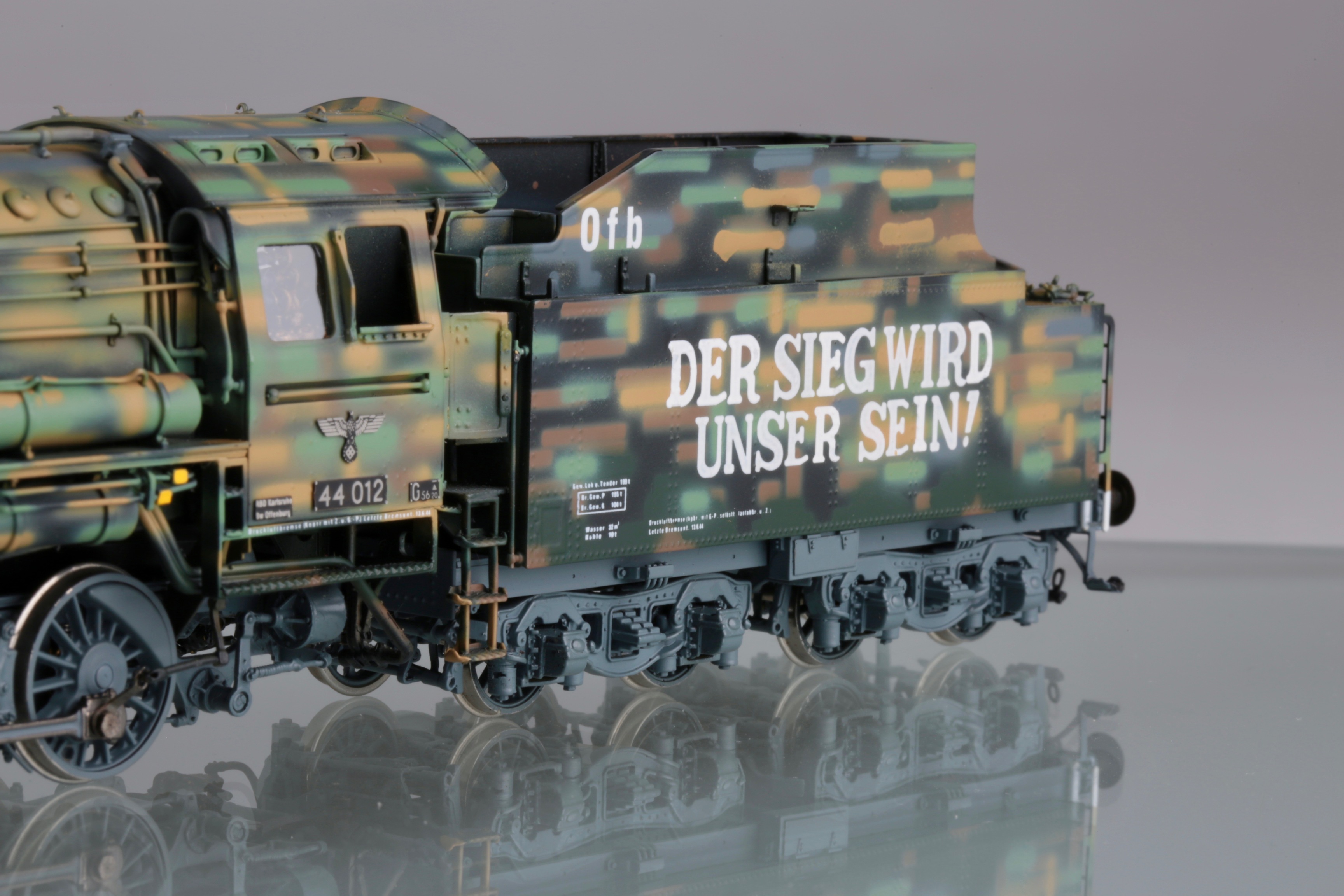 Сергей, вопрос совершенно корректный, приятно что Вы как и многие участники форума интересуетесь мелкосерийными моделями.На мой взгляд, все совершенно очевидно.Многие немецкие паровозы находились в движение с стандартным тендером 2'2'T32, на которые наносились стандартные для того времени лозунги, BR 44 012 находился в движении именно с таким тендером. Меня как коллекционера, больше интересовал вопрос нахождения в моей коллекции моделей BR 44 011, произведенной в единственном экземпляре и BR 44 012 в 20 экземплярах.Свершилось чудо-эти модели музейного качества, прижились у меня в коллекции, думаю это просто великолепно и очень красиво, особенно когда они находятся рядом.Вроде они и близнецы, но есть небольшие отличия.