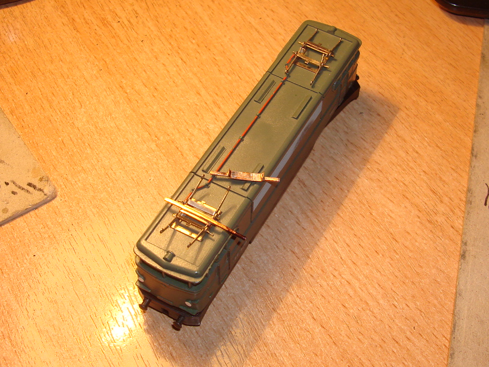 Начал с пантографов. Использовал для этого стальную проволоку диам 0,46, медную проволоку и листовую латунь. После длительного выпячивания глаз, получилось то, что на фото