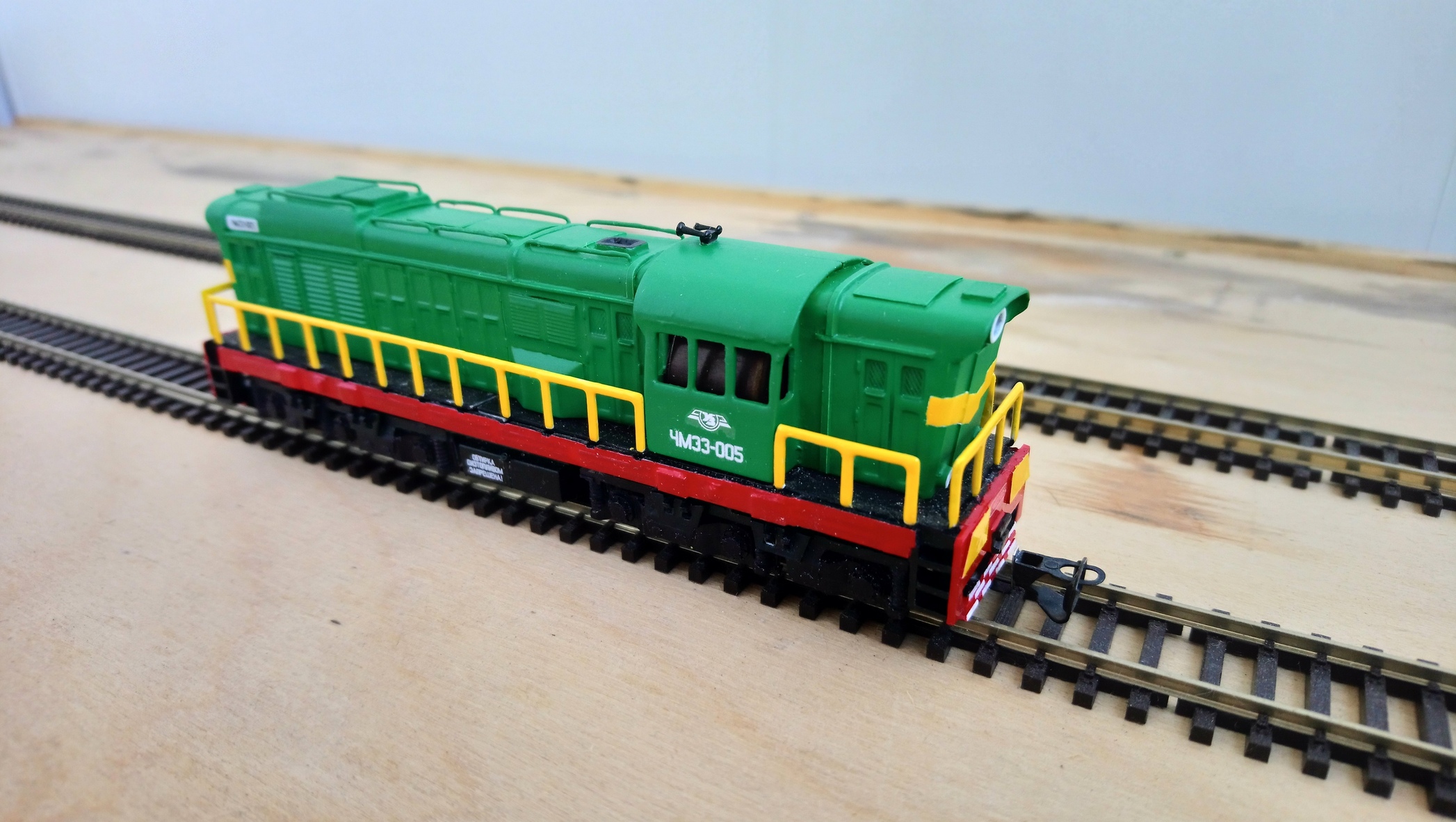 У меня уже была чмуха с паяными поручнями (хотя там проволока и толстовата, но все-таки это был первый опят), а в этот раз было немного лень с пайкой возиться, да и концептуально было интересно представить, как бы выглядел ЧМЭ3, если бы его сделала БТТБ. Поэтому старался максимально использовать исходный ЧМЭ2. А хороший и правильный ЧМЭ3 еще в планахNef писав:Вопрос только по поручням. Если я не ошибаюсь, они именно от чмэ2 BTTB остались? Не было желания более элегантными и тонкими их сделать?