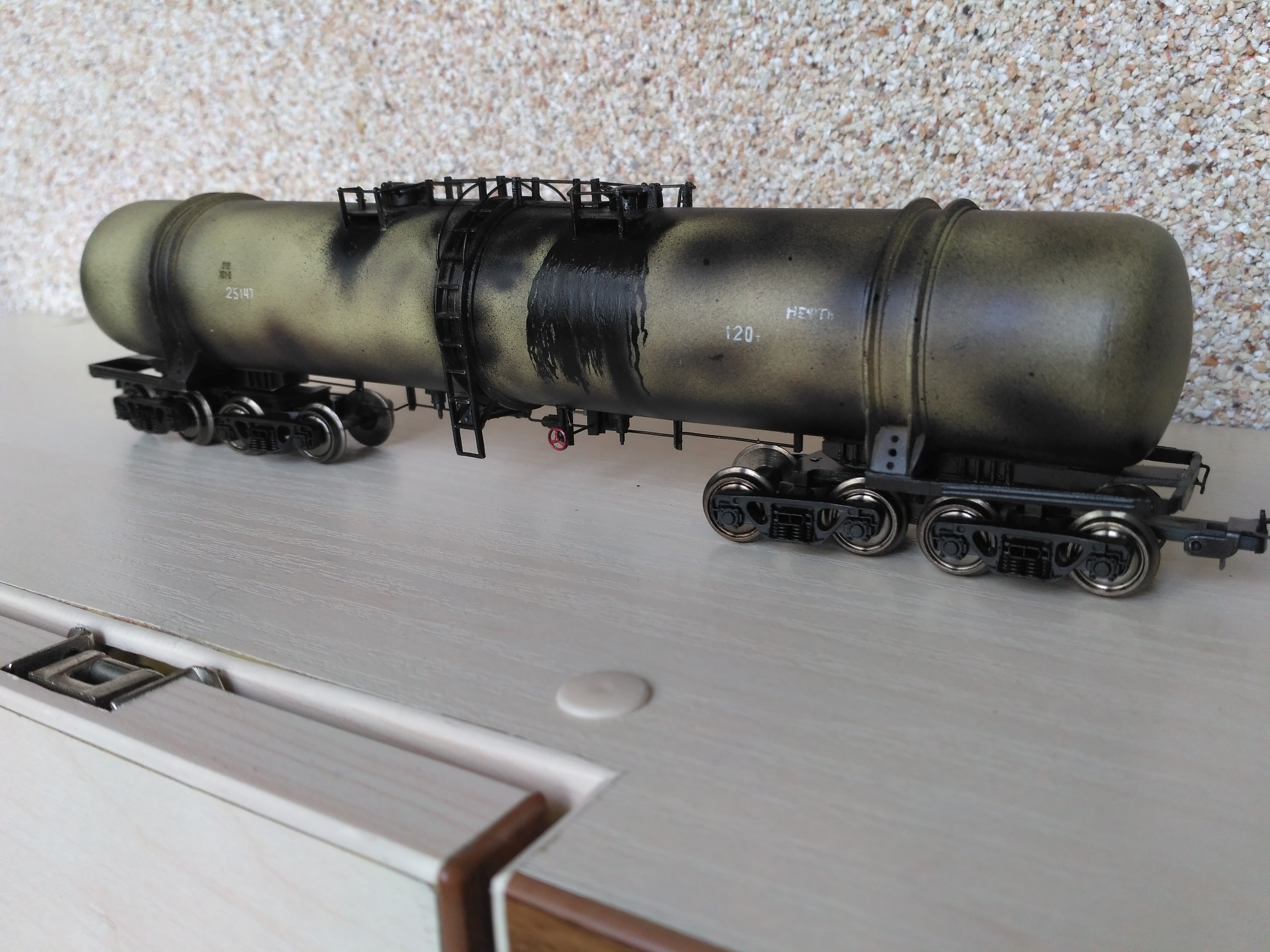 Есть, конечно, мелочи вроде отсутствия некоторых надписей, чуть-чуть перестарались с загрязнением на одном боку (сильно толстые слои краски). Но все эти замечания были бы справедливы, если бы она сделана вчера была. А как на те времена, возраст моделиста - это отвал попы :o , как говорит Денис ака Stinky. Самому нравятся такие прототипы, являюсь счастливым владельцем подобного замечательного вагона, сделанного руками друга.