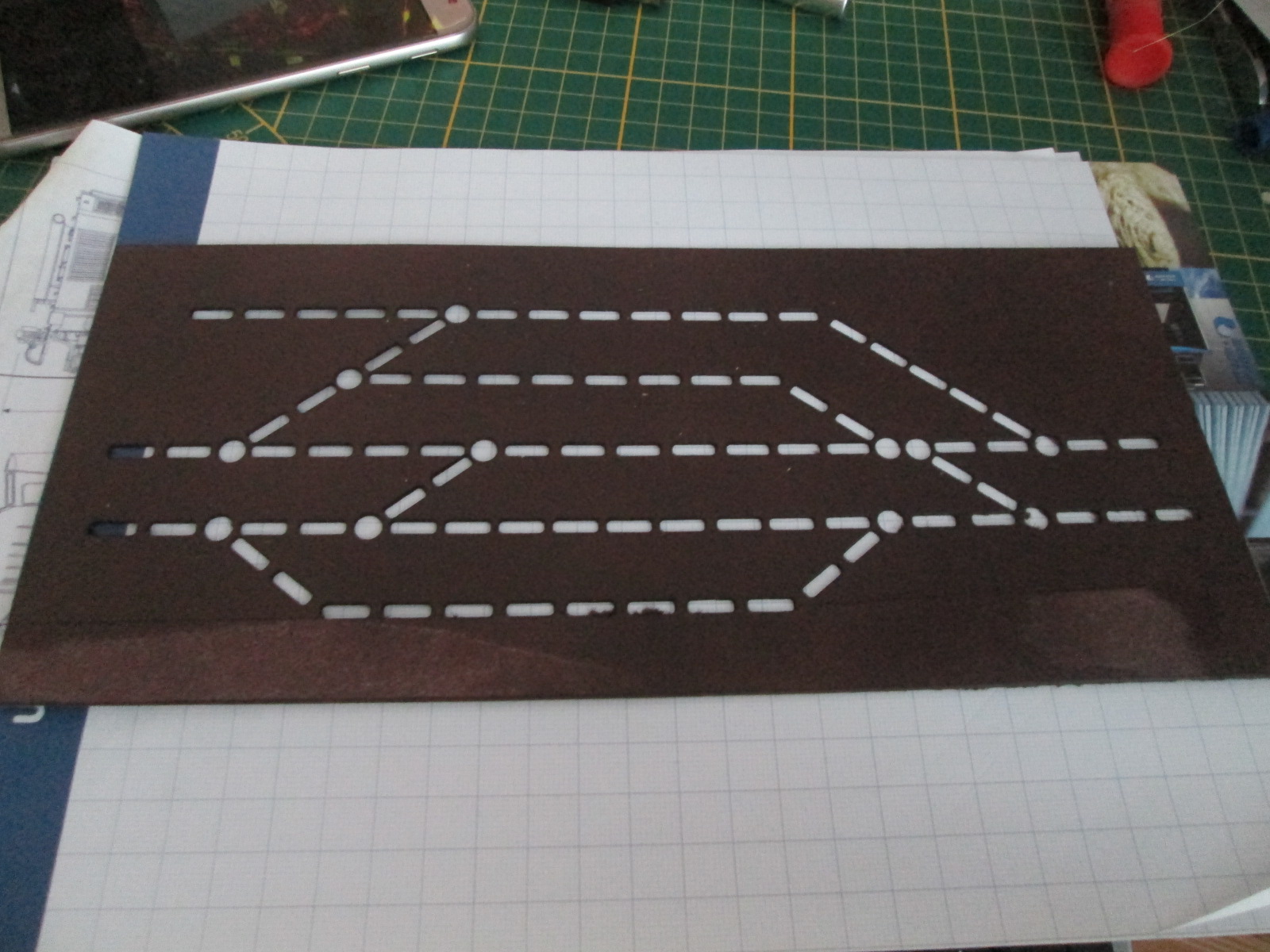 Флексами выложил первые полукруги от этих стрелок отказался на данном участке, так как радиус выходит больше расчетного. есть идея использовать данную стрелку на одном модуле где можно будет вывести на тупик, а атм изобразить стройку ветки флексы кончились, осталась пара и тут же заказал еще новый год наступил,что делать? резанул себе картонку под пульт. пока будет тестовая. понравится сделаю уже получше другую. а нет может переведу все на компьютер. понравилось мне управление с компа в клубе местном.