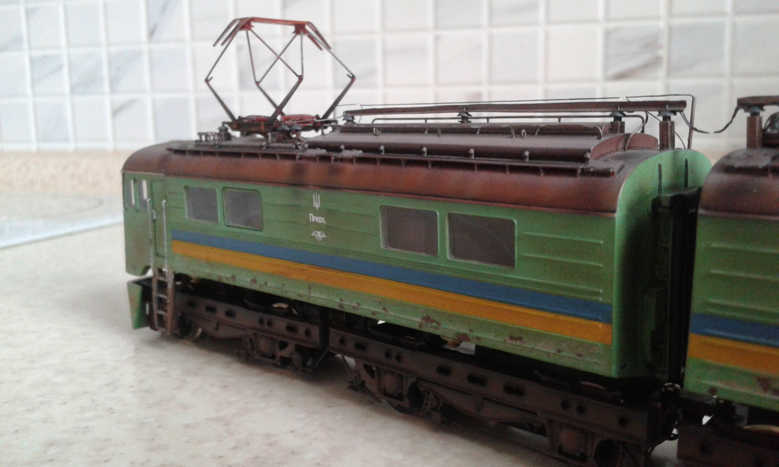 Всем привет! Сегодня закончил свой ВЛ8. Работать начал над ним в июле. Обмоторен двумя ходовками Роко е44. Но вот из-за того, что взял старые ходовки, которые были изрядно потрепаны, пришлось сделать одну ходовую секцию, собранную из запчастей этих двух. Второй кузов (так сказать правильнее, т.к. лок НЕ 2-секционный), не моторный. В итоге всё равно ходовые качества модели меня не устраивают... Больше никогда не буду брать старые ходовки. Следующую модель обмоторю новыми. Позже остановлюсь подробнее на некоторых этапах сборки ВЛ8: как состаривал, чем, скину фото процессов.