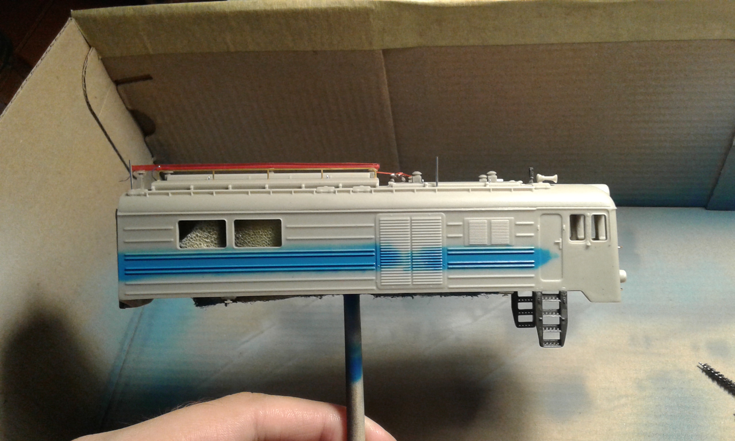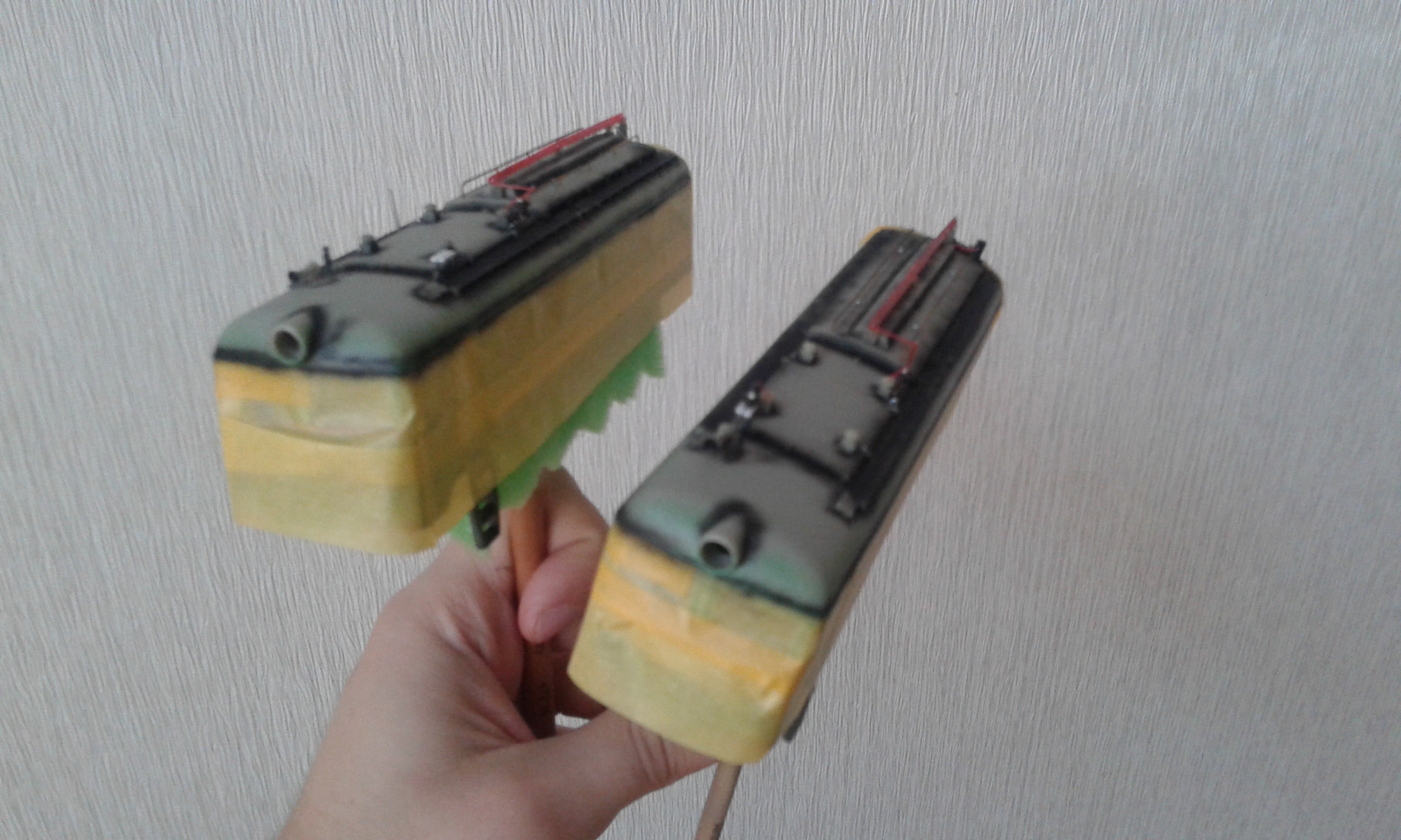 После завершения крышевого приступил к покраске. Красил акрилом Gunze Hobby Color. Краски прекрасно ложатся на хорошо промытую в мыльном растворе смолу даже без грунта! Пробовал отодрать, не получилось. Наверное, самый лучший акрил из доступных сегодня.