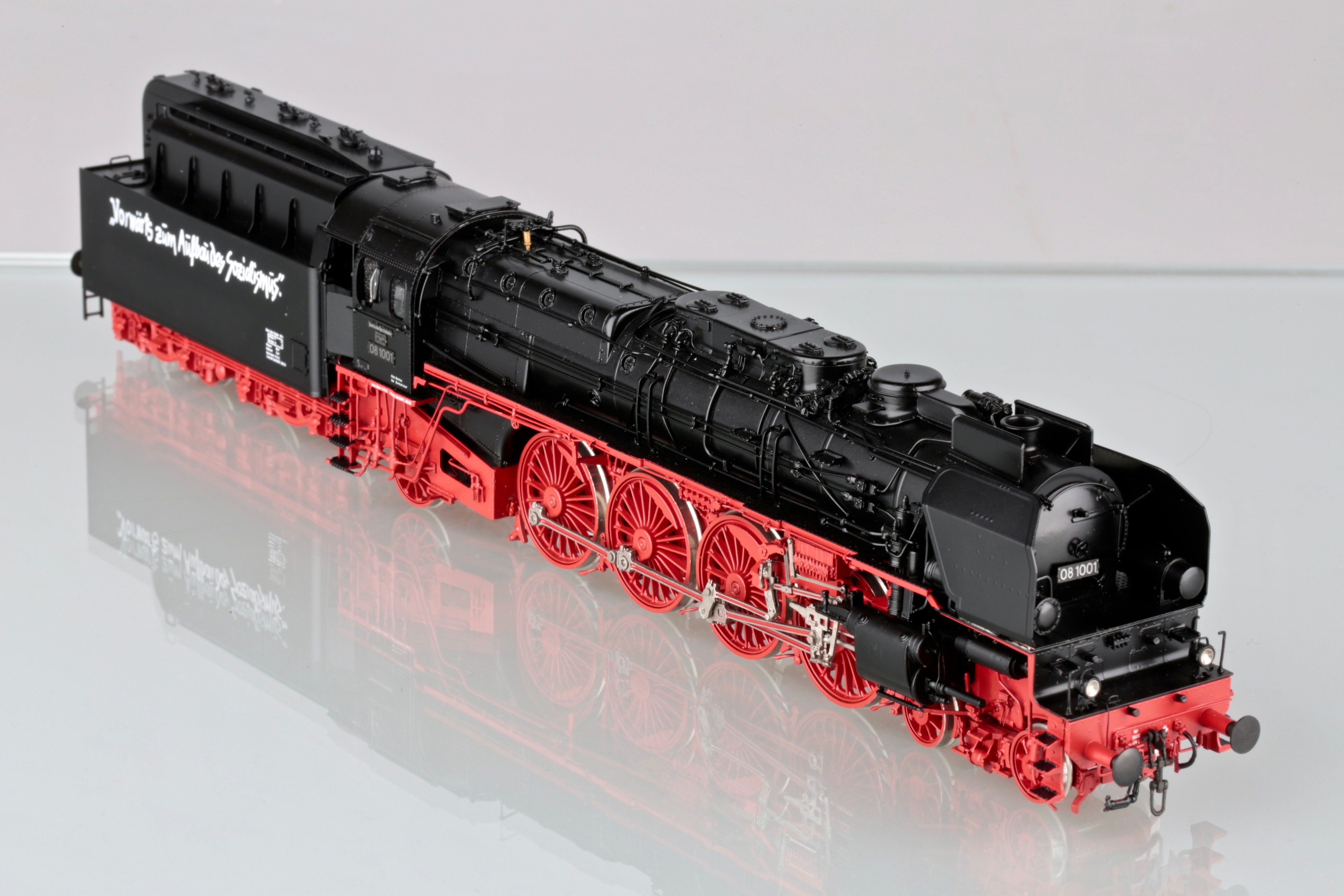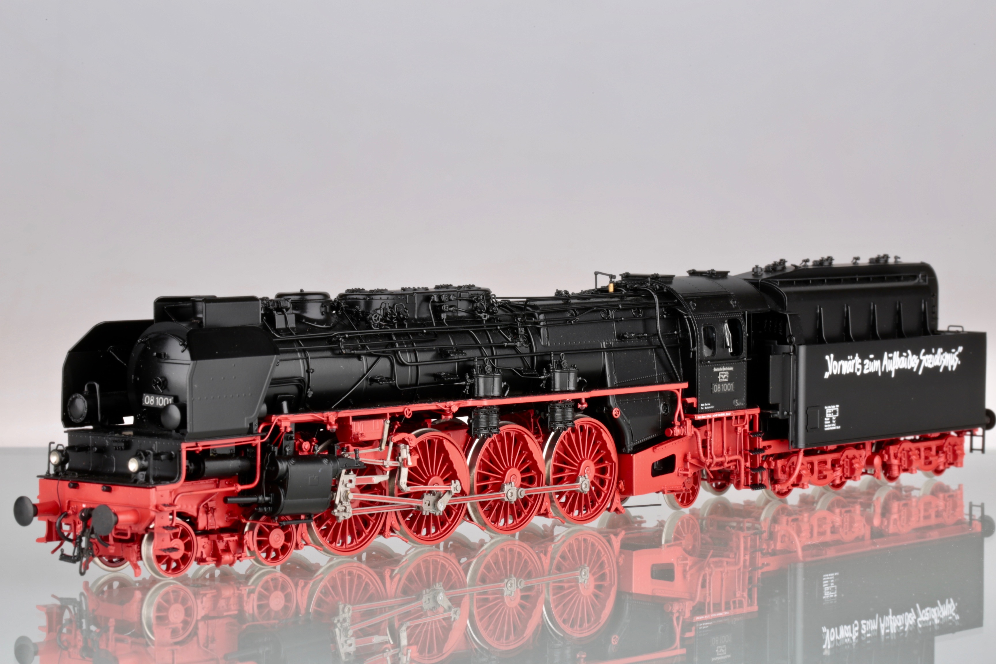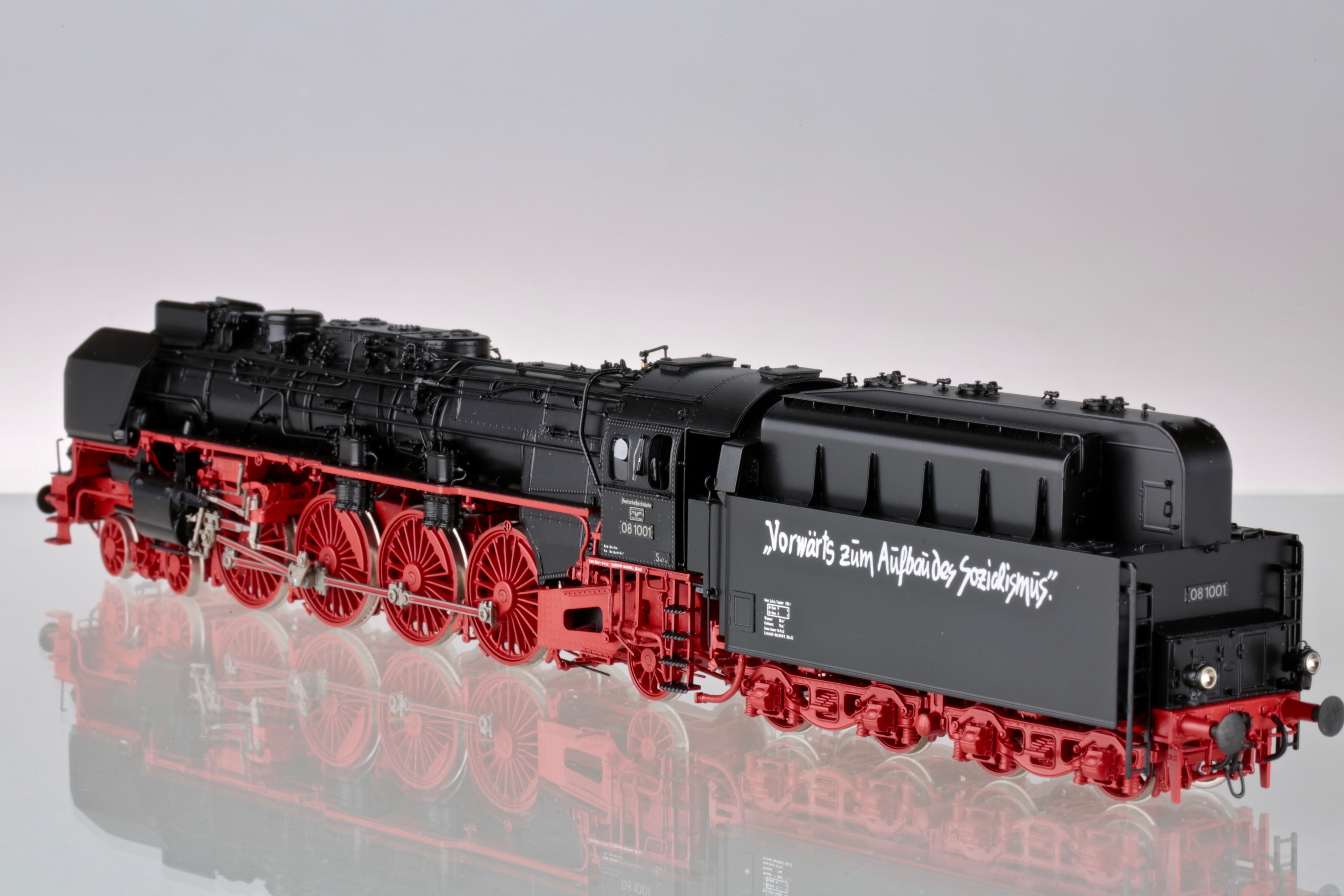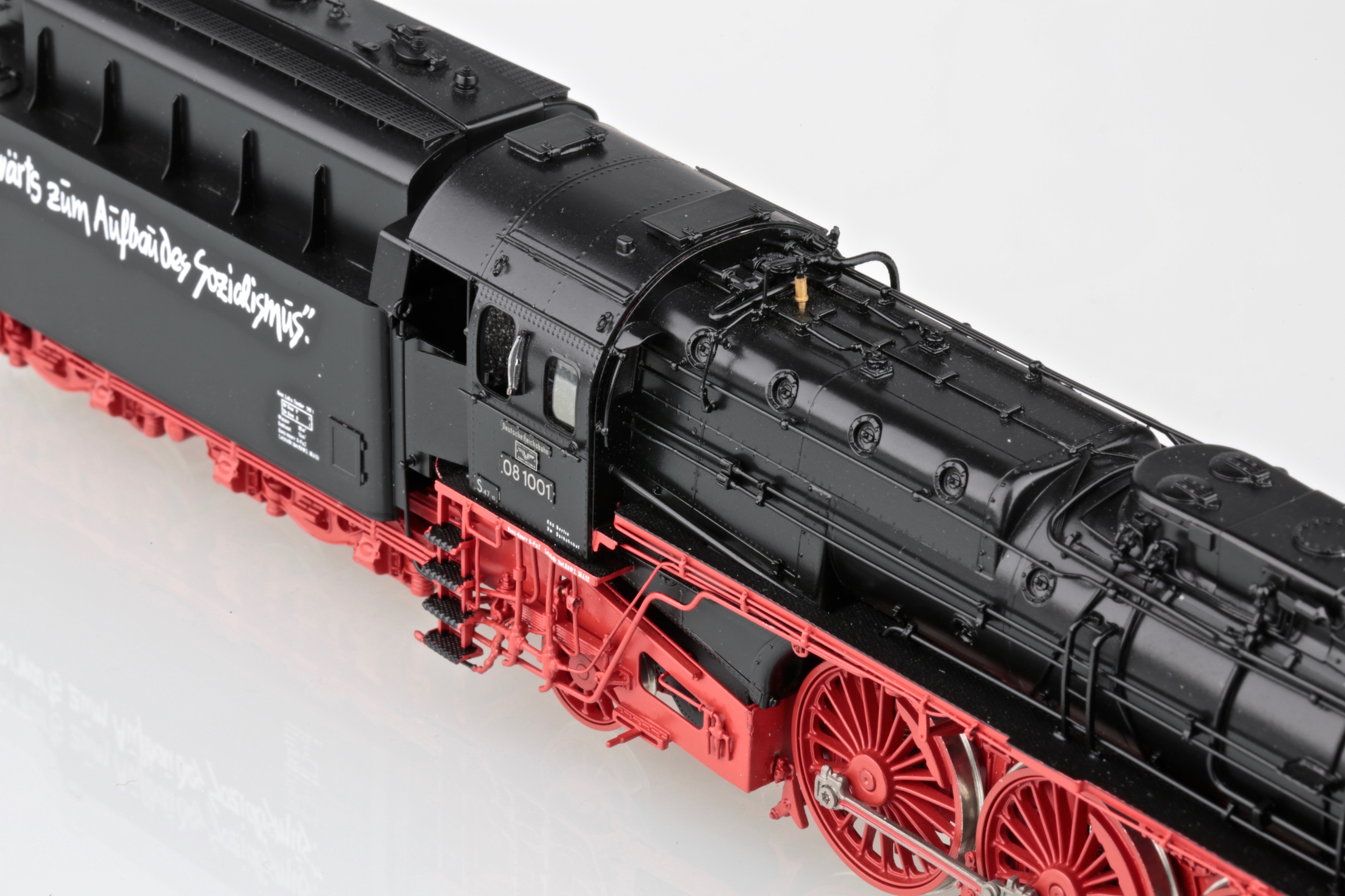 Владимир,пожалуйста,посмотрите официальное видео презентации модели BR 08 от Марклин. Этот ролик Марклин дополнил несколькими архивными фото /причем отличного качества/ этого паровоза.Внимательно посмотрите последнее фото. Еще более внимательно рассмотрите тендер паровоза, отображенный на этом фото. Еще более,более,внимательно и вдумчиво изучите расположение и позиционирование лозунга на тендере.Ну....,и что Вы видите???? Все правильно и я о том же-лозунг на тендере позиционирован, как и на Метакитовской модели на боковой стенке СВЕРХУ!Ссылка на это видео: https://youtu.be/qgEgC3507KU?t=85