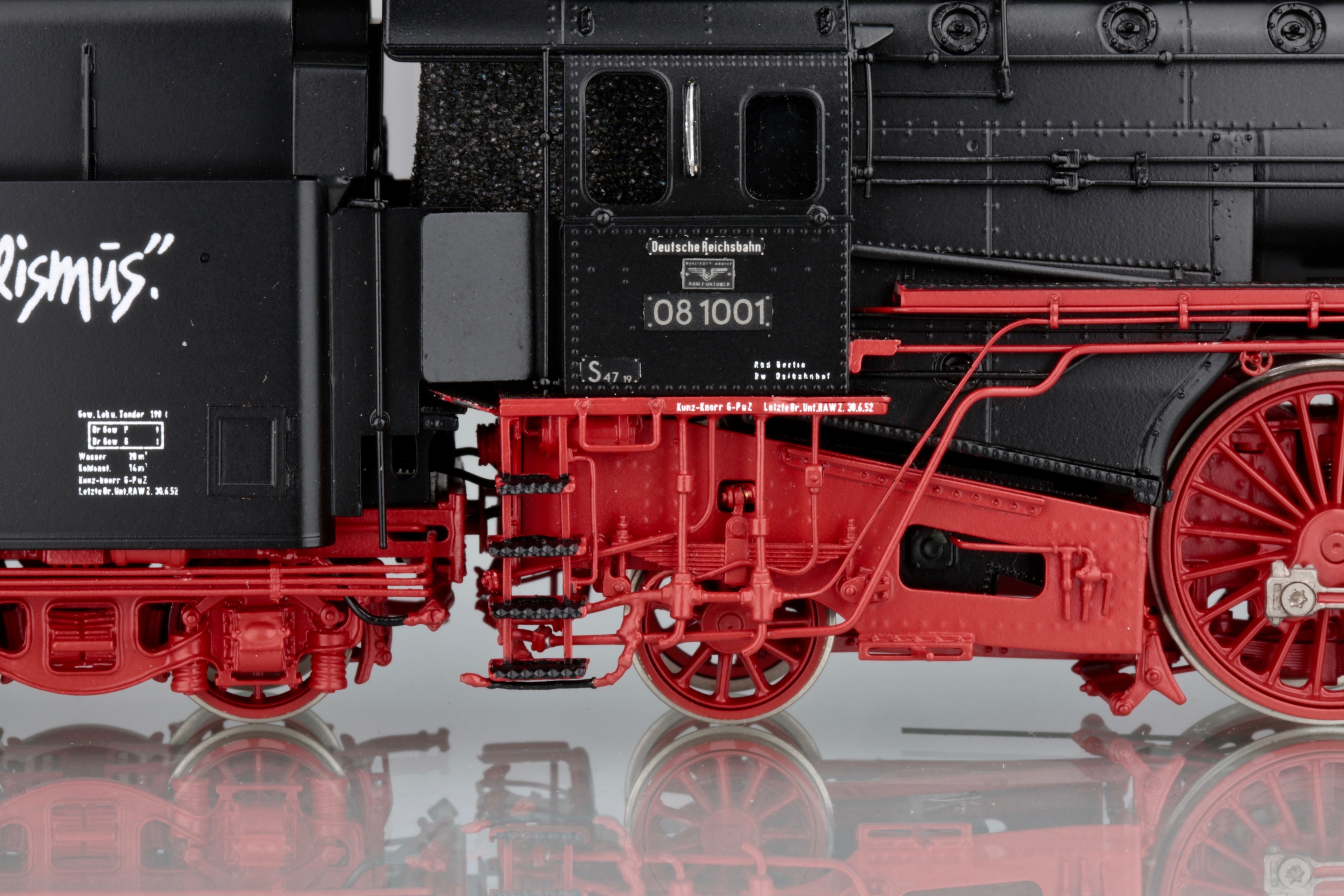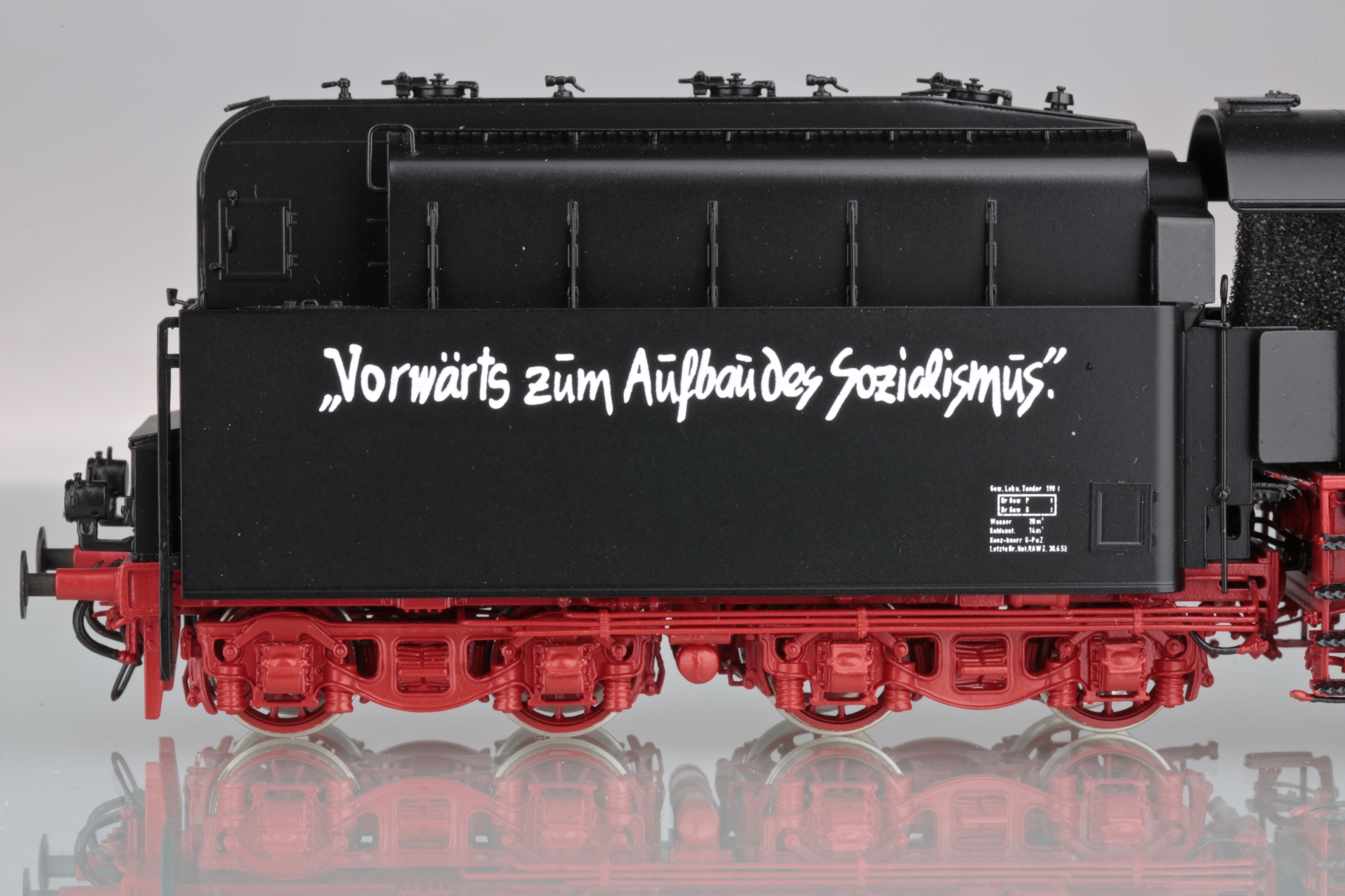 Владимир,пожалуйста,посмотрите официальное видео презентации модели BR 08 от Марклин. Этот ролик Марклин дополнил несколькими архивными фото /причем отличного качества/ этого паровоза.Внимательно посмотрите последнее фото. Еще более внимательно рассмотрите тендер паровоза, отображенный на этом фото. Еще более,более,внимательно и вдумчиво изучите расположение и позиционирование лозунга на тендере.Ну....,и что Вы видите???? Все правильно и я о том же-лозунг на тендере позиционирован, как и на Метакитовской модели на боковой стенке СВЕРХУ!Ссылка на это видео: https://youtu.be/qgEgC3507KU?t=85