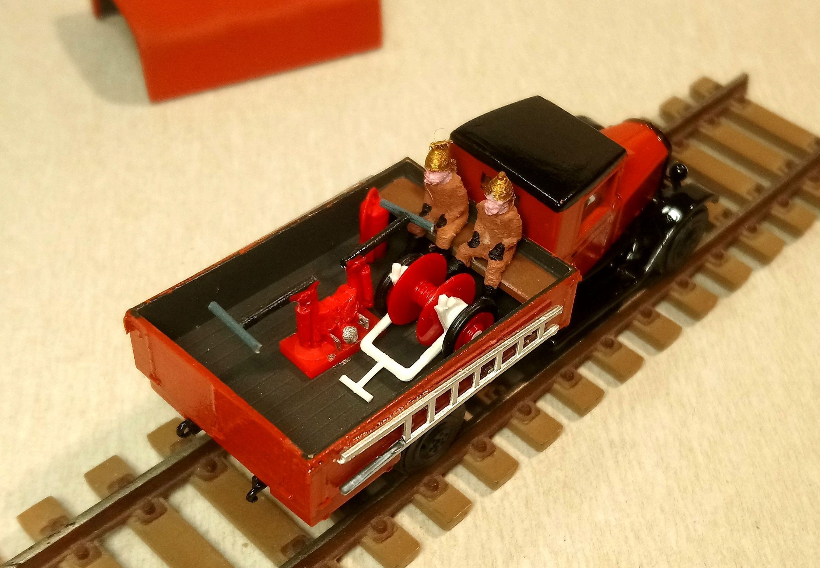 От себя добавил пожарные лесницы,тачку для шланга,пожарных и запилил