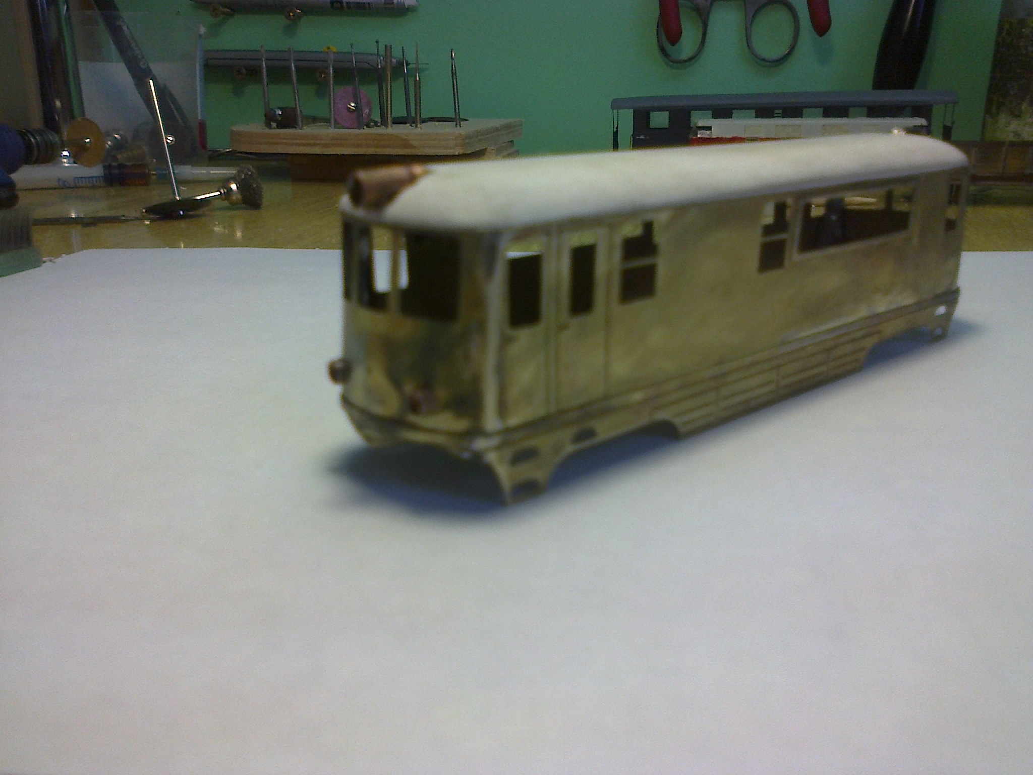 Платформа - в свое время была построена модель бронепоезда "Козьма Минин". Это от него контрольная платформа.Платформа сделана полностью вручную ныне покойным моделистом. Теперь её использую как лоток для мелких деталей и как память о человеке.