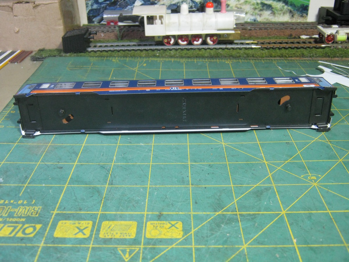Marklin. И хотя в Н0, но это самый натуральный ЦМВ потому, что из пластика только интерьер и переходные суфле. Кузов, рама и крыша металлические. С этим надо было что-то делать. Предполагался перекур на один вечер. Довёл кузов вот до такого вида. Вроде бы можно подкатывать тележки и ставить на полку, но понял, что голое стальное днище конечно никогда меня не устроит.