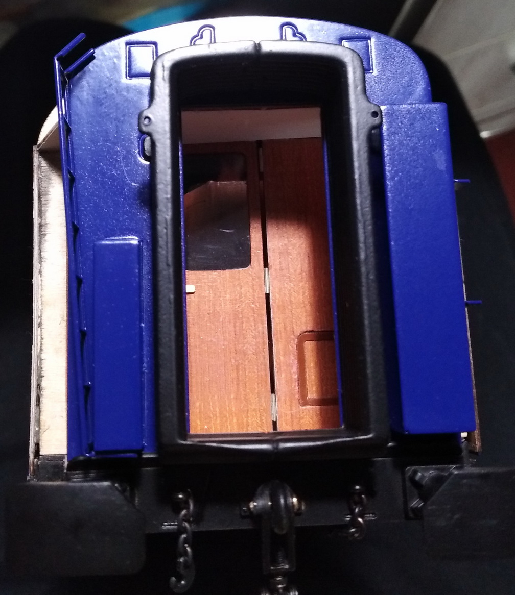 По размышлению, отступил от инструкции и внутренние панели наружных стен купе приклеил к остальным стенам. Потом к ним приклею среднюю часть (которая с решётками из полосок белого шпона), ну а потом обшивку. Между внутренней и средней частями будут располагаться подвижные стёкла (большие) и приклеены неподвижные (малые).