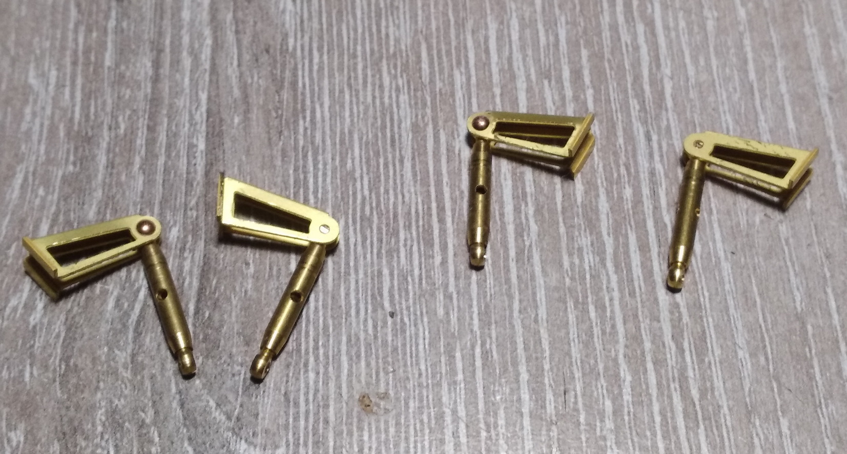 Доклеил всю мелочь внутри умывальников. Долго думал как придать изгиб латунным дверцам. В итоге подобрал лист алюминия с изгибом и отрезок металл. трубы. Матрица и пуансон. Вроде получилось. Покрасил внутреннюю часть в белый цвет, наружную ждёт та же процедура, что и стенки купе - бумага и полоски шпона. Ещё оси для возможности открытия, ручки и зеркала.