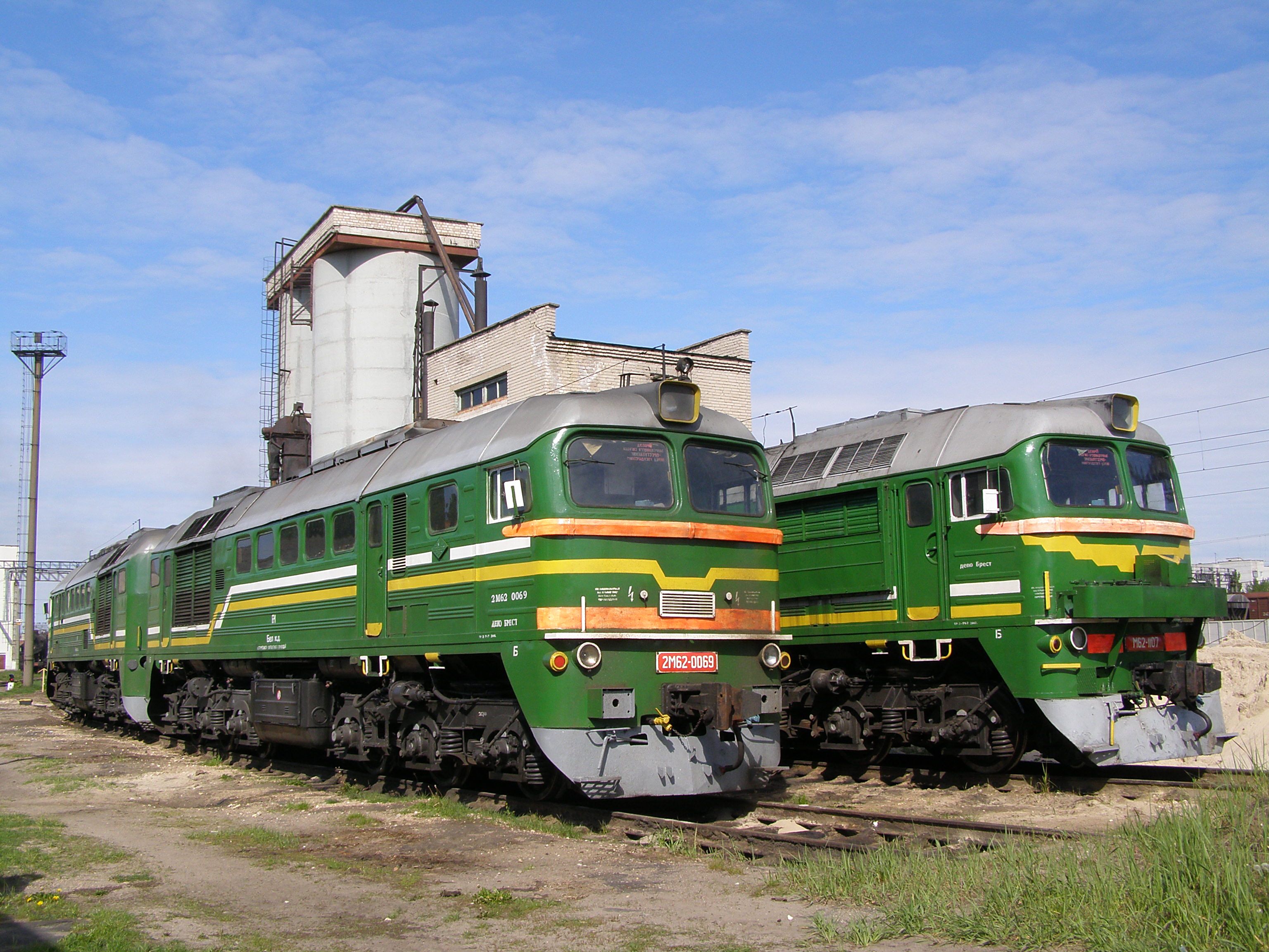 Модель 2М62 выполнена в немного нетипичном варианте - с 5-дверными кузовами, которые имели тепловозы первых выпусков. Несмотря на то, что таких тепловозов было выпущено немного и вживых уже почти не осталось, мне удалось встретить такой сравнительно недалеко - в соседней Беларуси. В мае 2008 года в депо Брест-Восточный была возможность увидеть такой тепловоз и не только увидеть, но и потрогать руками и сфотографировать