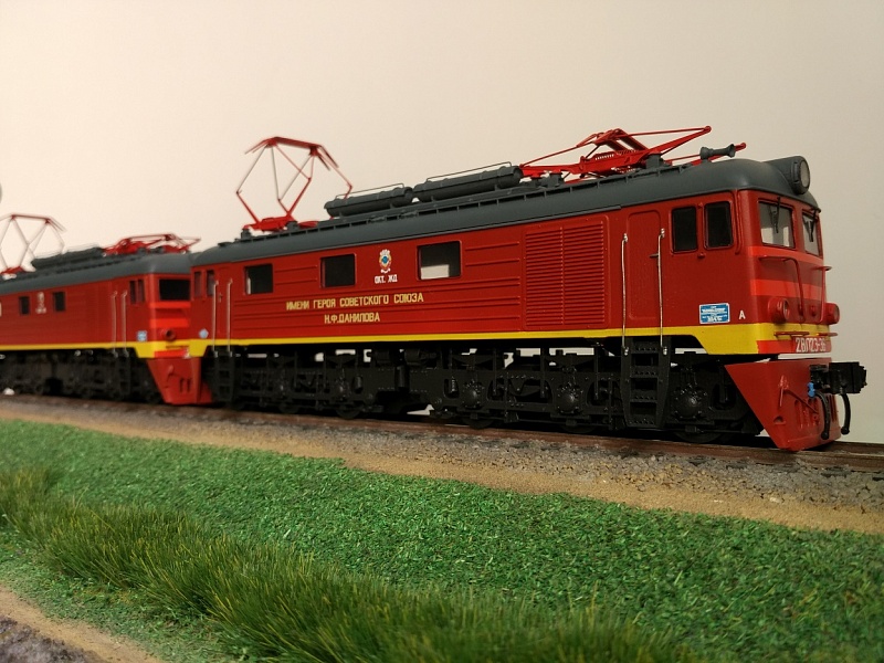 Фото готовой модели электровоза 2ВЛ23-36 в интересной окраске Имени Героя Советского Союза Н.Ф.Данилова.