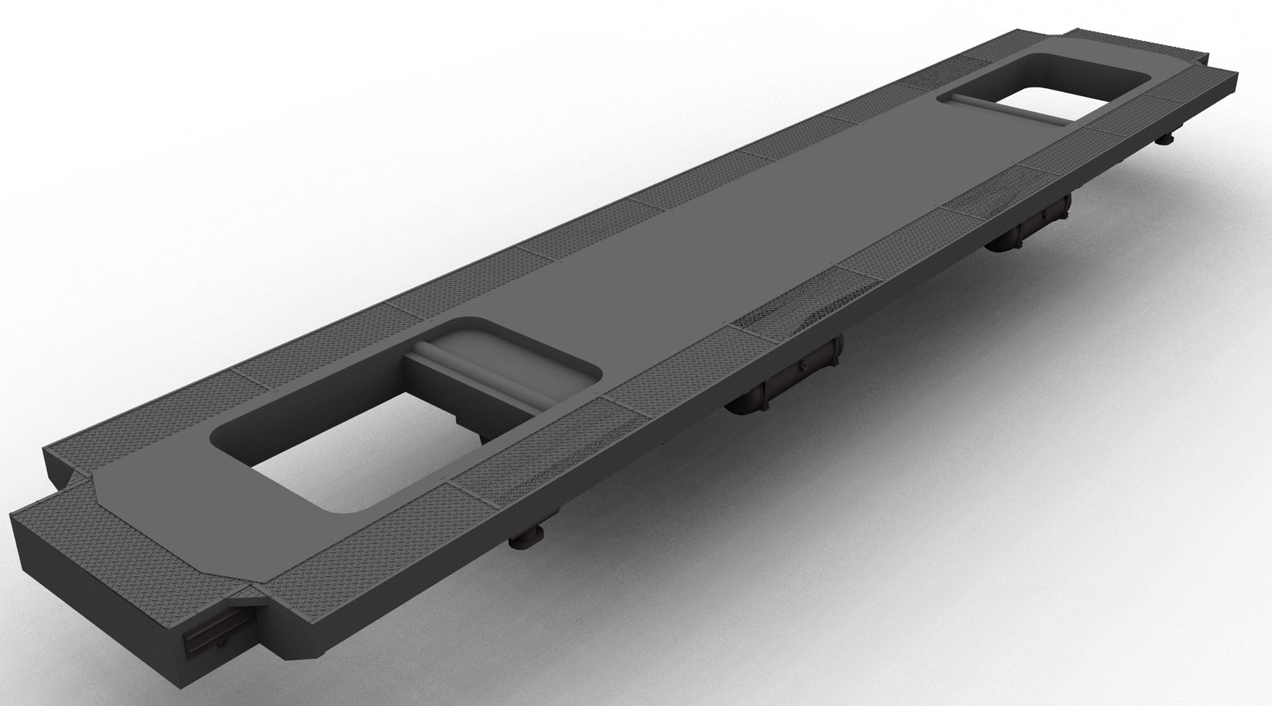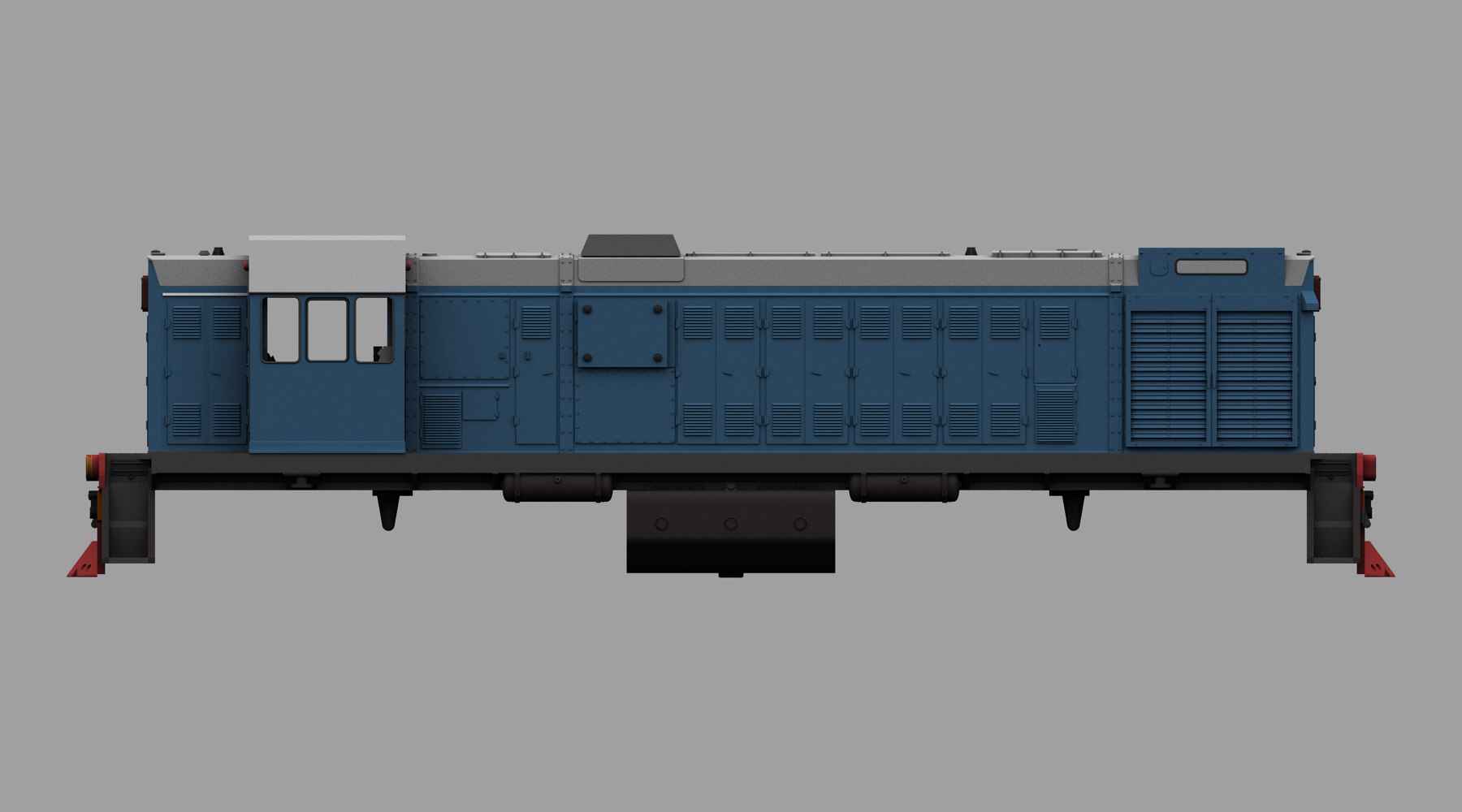 Рендеры модели выкладываю. Мастер-модель выращивается на 3D принтере, дальше тиражирование путем литья из смолы. В качестве ходовой можно использовать модель тепловоза М62 (и любые вариации) от фирмы Roco. Рама имеет посадочные места для установки этих редукторов, а стендовые телеги выполнены в точной копии редукторов Roco. В комплекте идут 2 вида буферных фонарей.