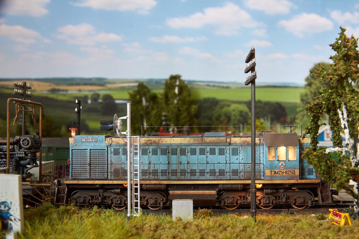 Модель тепловоза ТЭМ2У-8250 со следами эксплуатации. Автор модели московский моделист Владимир Попов. Фото сделаны на домашнем макете Максима Баранова.