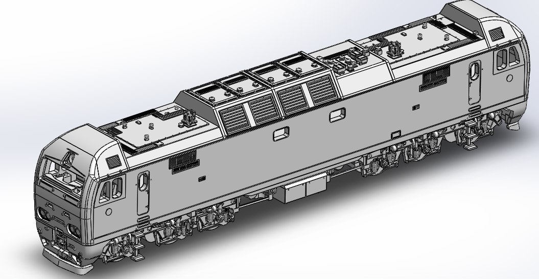Рендеры модели выкладываю. Мастер-модель выращивается на 3D принтере, дальше тиражирование путем литья из смолы. В качестве ходовой можно использовать модель электровоза e151 (и любые вариации) от фирмы Roco.
