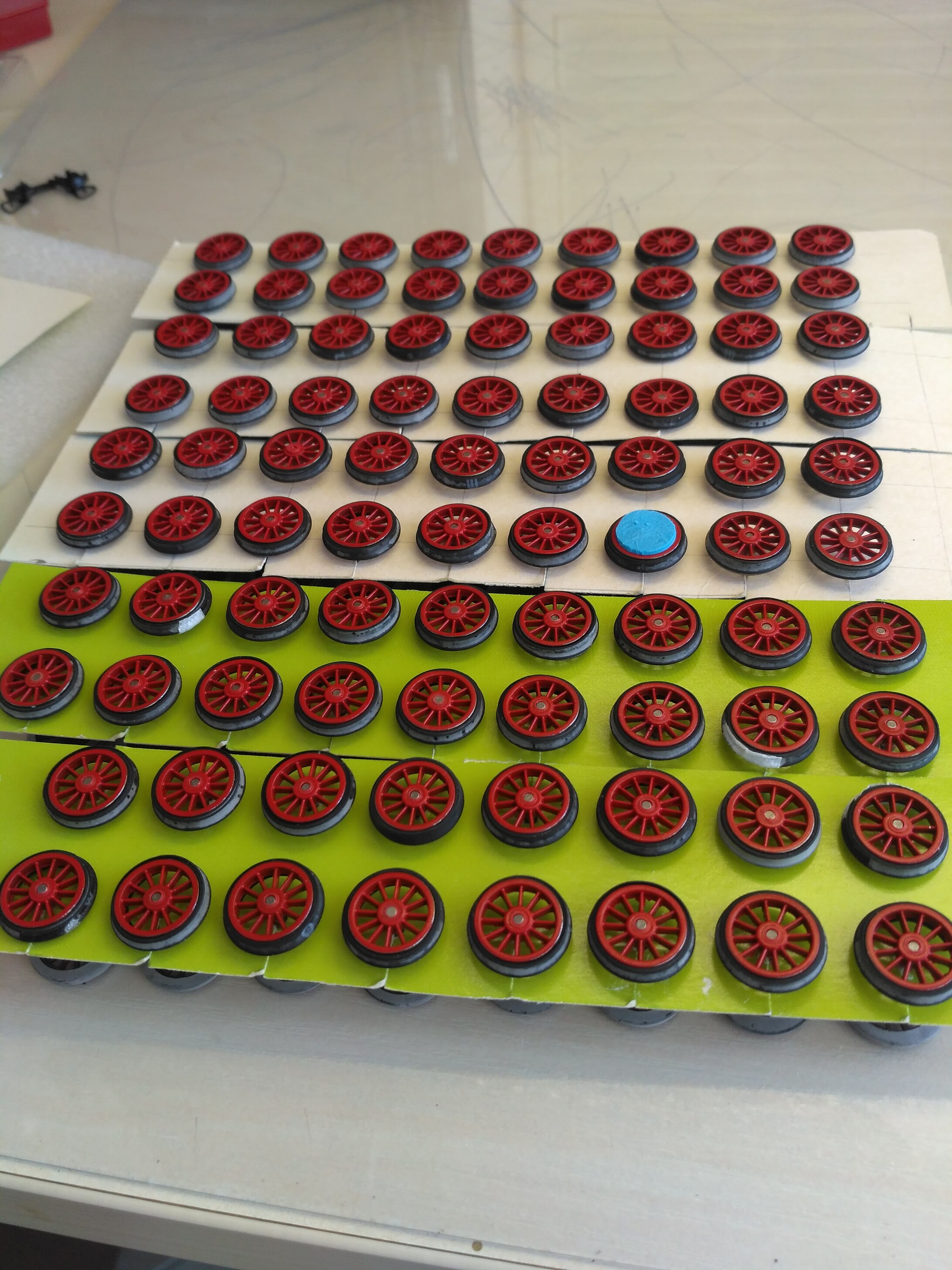 Вопрос покраски очень щепетильный, так как одним неверным движением есть риск испортить всё , на что были потрачены силы ранее. Казалось бы простая задача по перекраске колес от донора из красного в черный выливается в целый процесс. Первоначально их после демонтажа пришлось перемыть от смазки , а потом придумать как замаскировать чтобы не красить бандажи и шестерни. Для этого использовал нарезанную колечками термоусадку, которой защитил бандажи.
