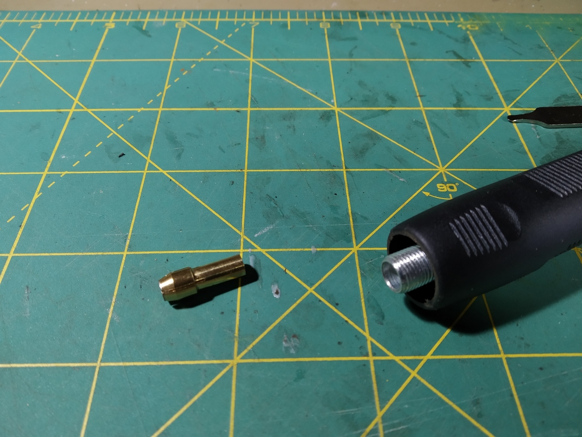 Все державки 3,2 мм , цанга в приводе и в гибком шланге тоже под 3,2. Т.е. штатные насадки устанавливаются без проблем.