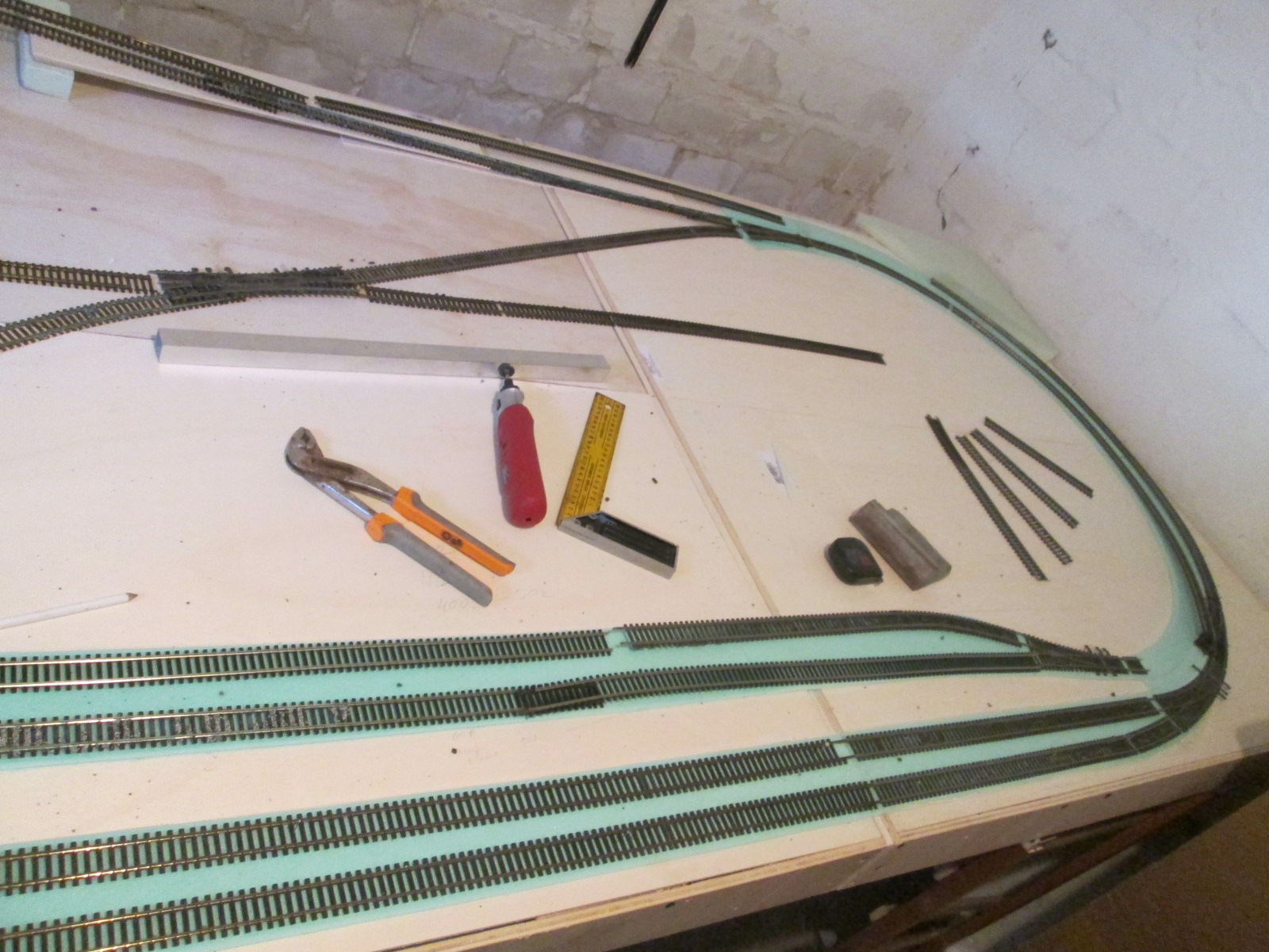 на вскидку остальные пути правда спорный момент с будущим мостом. говорят что за 1 метр подъем на 5 см слишком крут будет и будет состав плохо затягивать. могу понихить до 4 см. был вариант поднять всего на 1 см, а снизу сделать вырез и там в выемке соорудить типа озерца