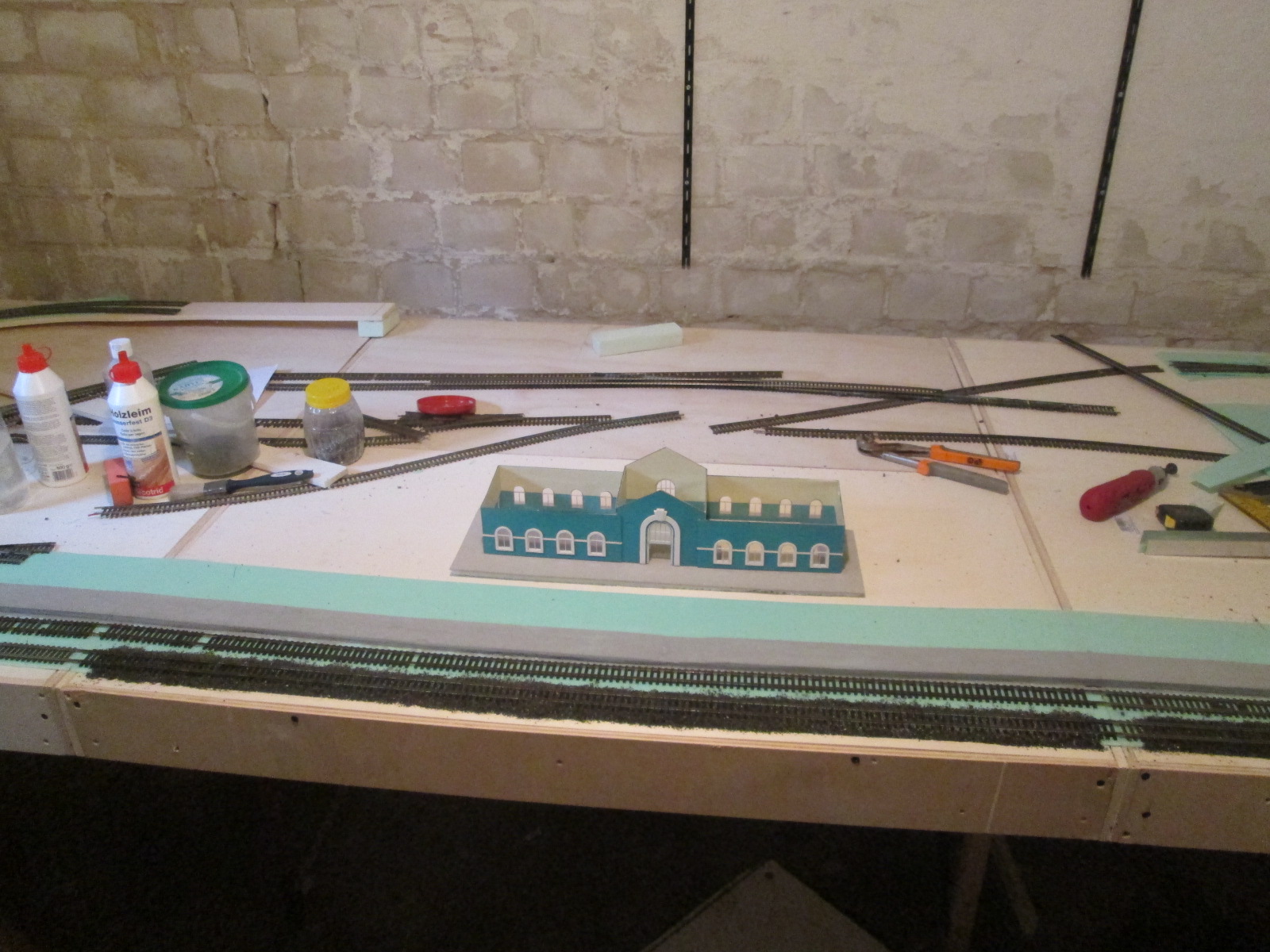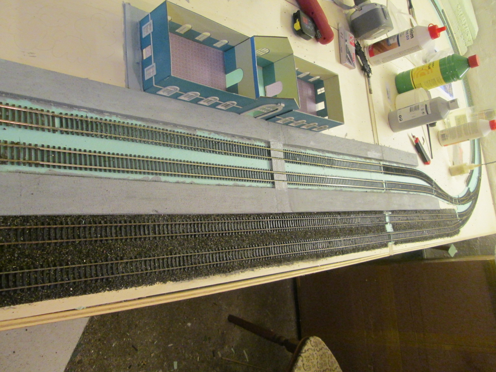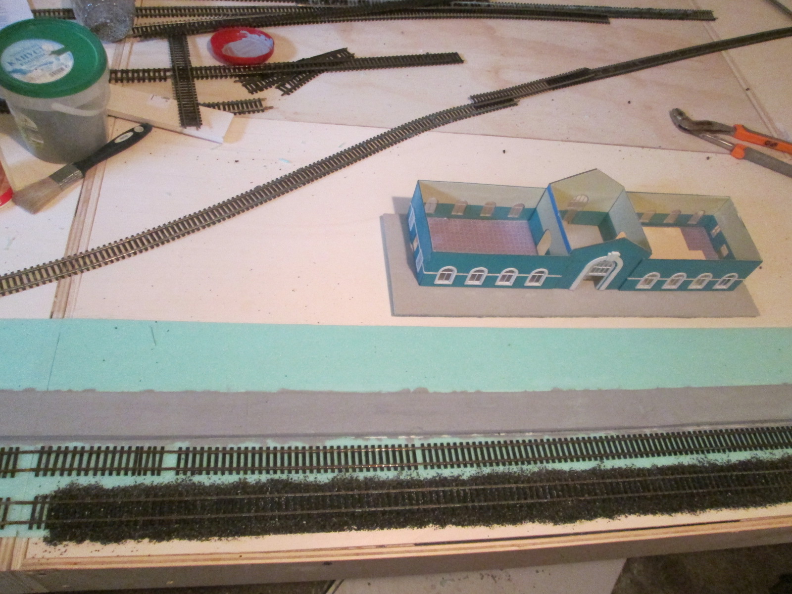 оформляю в одном углу потихоньку горку вчерашнее состояние путей у вокзала, сегодня засыпал их дальше. часть у вокзала уже присыплено.