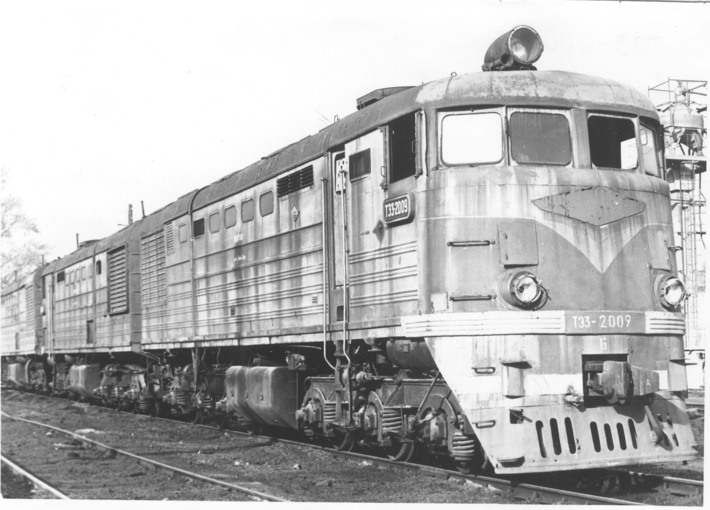 ТЭ3-2009. Удалось снять в мае 1996 в депо Львов-Запад. Рядом стоял ТЭ7-104 (номер перебитый) - последний ТЭ7 в депо Львов-Запад.