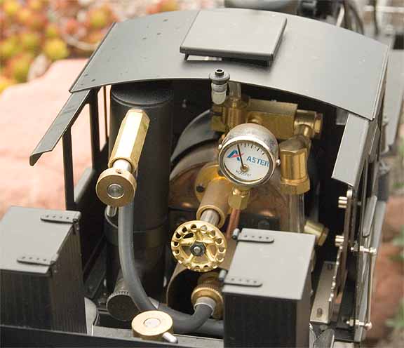 Оборудование: 2 предохранительных клапана, регулятор, кран сифона, манометр, водомерное стекло, клапаны продувки цилиндров, обратный клапан воды, свисток, пароперегреватель. Насосы: осевой и ручной в тендере.