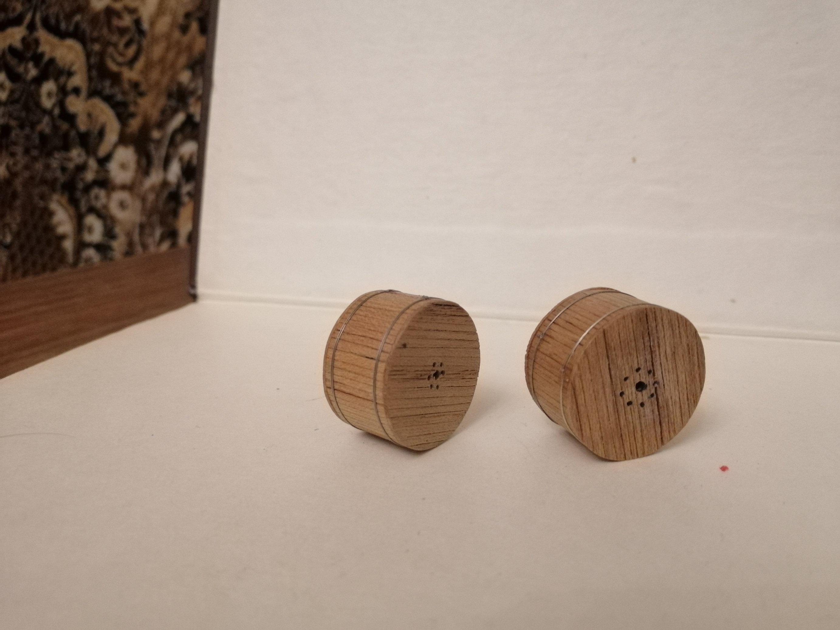 Сломаные буфера решил не востанавливать просто рассверлил дырочки-будем считать немцы сняли на свои нужды. Такие вагоны всеравно годами стоят в тупиках. За выходной сделал кузов-трап надсройки на крыше из тех же дискет и покрасил. Пол ночи из литников точил изоляторы