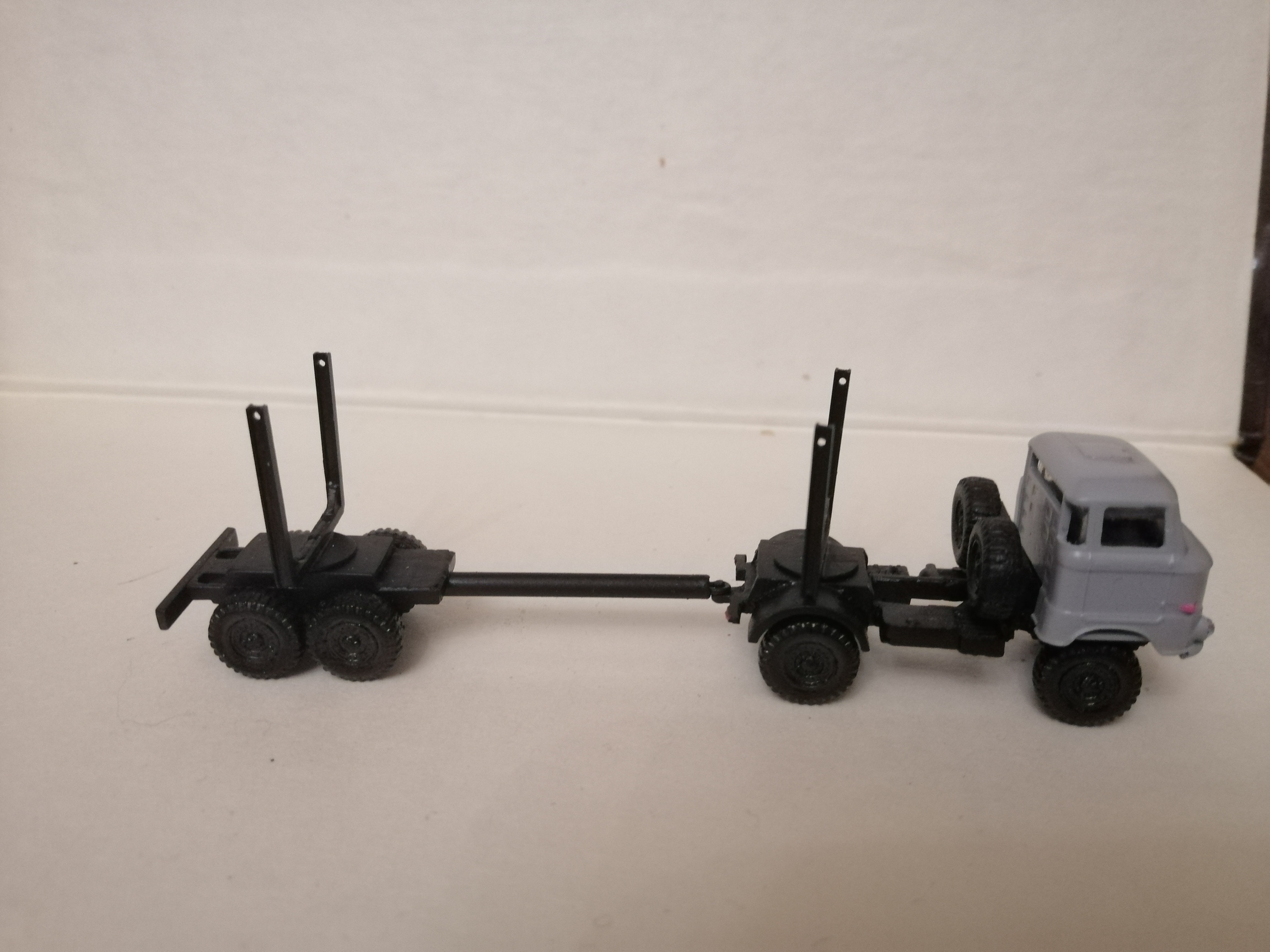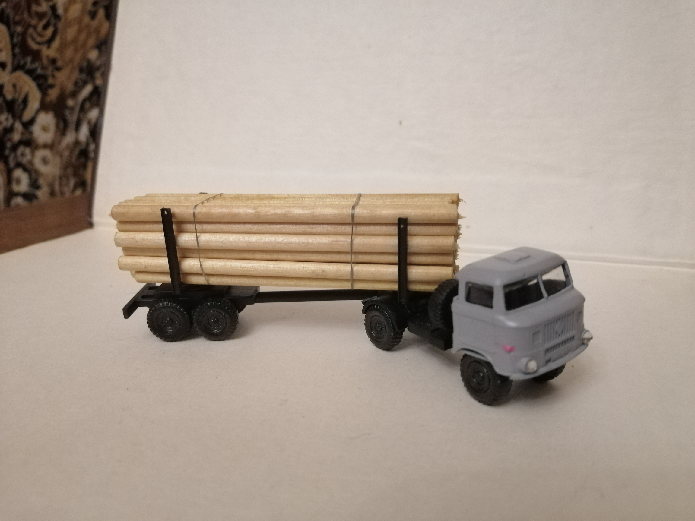 Появилось желание чтото сотворить.первым решил сделать лесовоз. Машинка должна быть полноприводной. порылся в чертежах -ИФА оказалось имеет 2 базы. полноприводная рама оказивается короче. вобщем вооружаюсь ножком.кусочками плассмас-итог