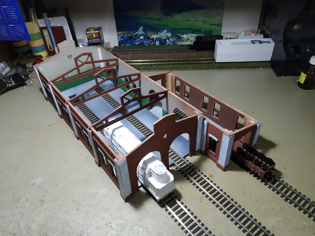 Депо просто шикарное получается. Я вначале на картинках внутри помещения подумал , что это архивные фото, только присмотревшись увидел фактуру ДВП на потолке. Ещё успел подумать - зачем там понадобилось подшивать потолок OSB плитами!? Очень реалистично. ЮрСаныч , это настоящий мастер-класс!