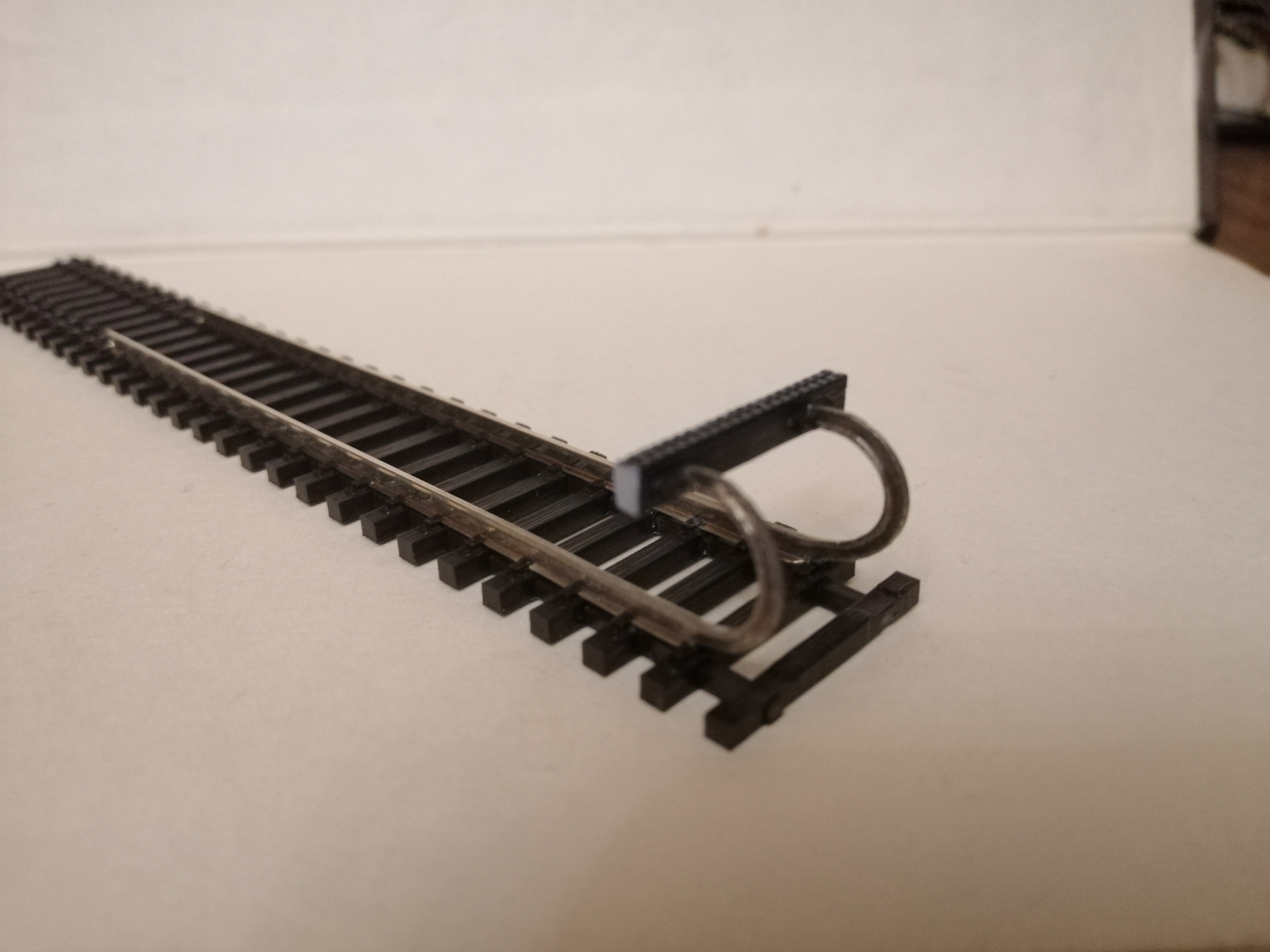 Я вначале хотел добавить упор но S-образно выгнуть не получается- радиус всего 6мм а с косым не смотрится. поэтому решил оставить так .Тупик ведь не улавливающий -я его делал для трансформаторного вагона который на будущем макете будет стоять у трансформаторной будки на задворках депо, и по задумке даже с частично разобранными до тупика рельсами (ранее делал фото как приблизительно это будет выглядеть когда фотографировал трафоваген)Будем считать что немецкие работники депо решили секономитьна упоре, тем более что с вагона они 2 буфера тоже свинтили либо на нужды депо или на металлолом для выпивона.