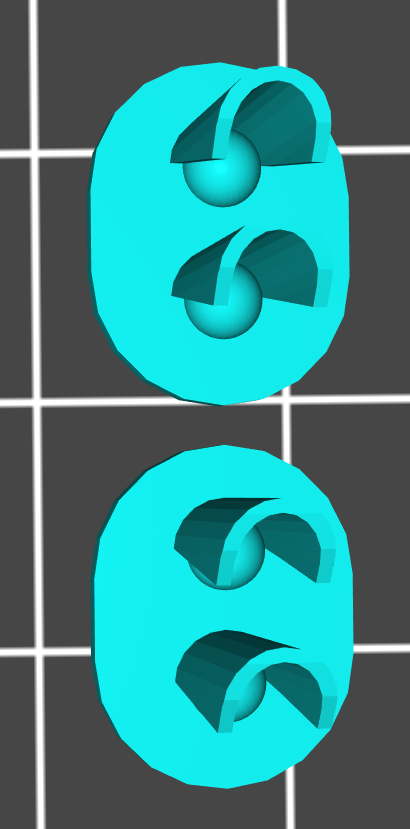 2. Раскосы (подкосы?), поддерживающие козырьки, ИМХО, не стоит печатать — будет грубо. Их лучше изготовит отдельно (проволока или тонкий углепластиковый стержень) и приклеить на готовую деталь. На щите и козырьках нужно предусмотреть небольшие углубления под них.