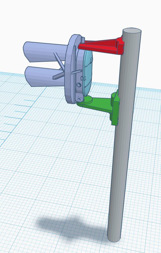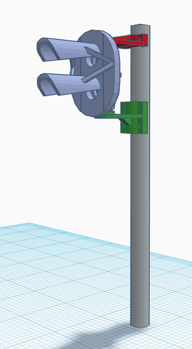3. И верхний кронштейн крепления к мачте нужно установить чуть повыше, он не должен «бить по голове», как планка ростомера (у «СвеТТофоровских» светофоров это самое непрототипное место, ИМХО). Вес гловки держит нижний кронштейн — поэтому он такой массивный, а верхний только поддерживает в заданном положении.