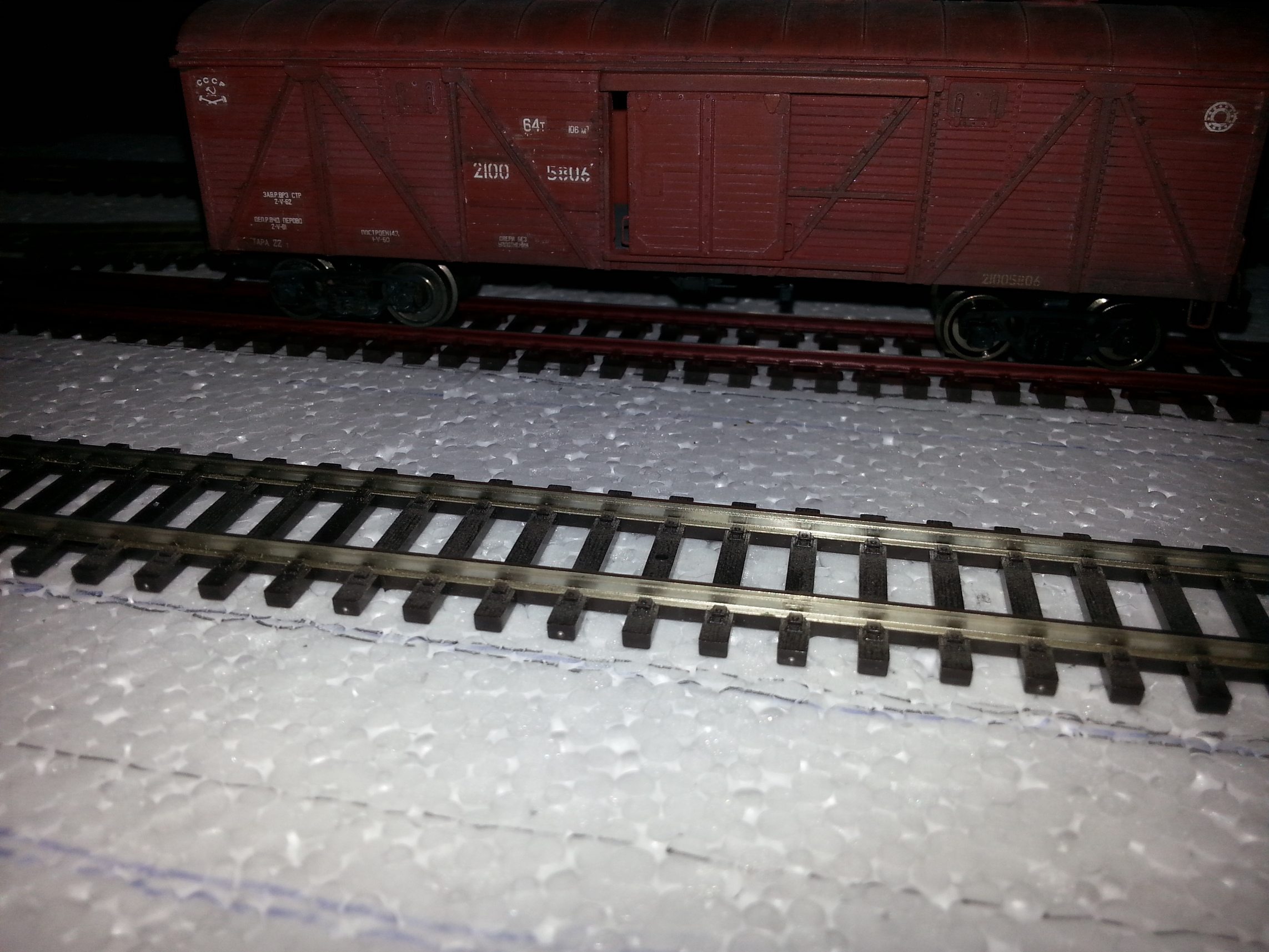 Работы по модулю хоть и не так быстро, как хочется, но двигаются. Завяз с покраской рельс, делаю эту процедуру первый раз и как у любого новичка, процесс идет медленнее, чем хотелось. Крашу баллончиками, краска из того, что доступно в местных магазинах. Пока крашу в ржавый цвет малозадеянные пути, завтра начну красить основные.