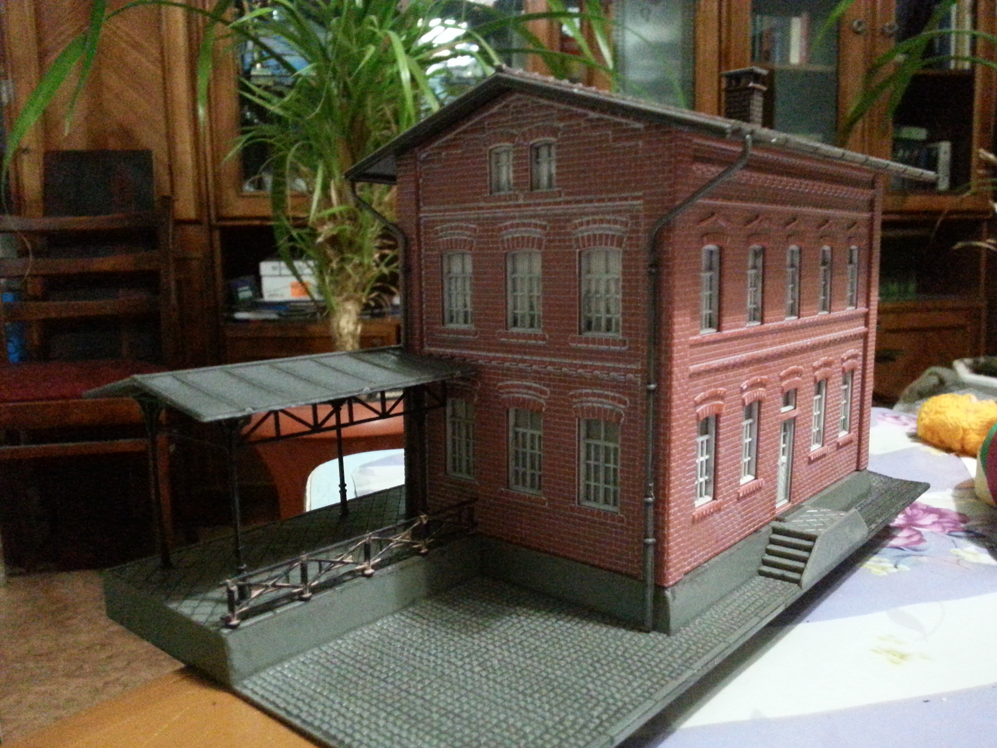 Вокзал будет стоять у стенки, на счет боковых стенок, можно, конечно, разрезать на две части, но рука не поднимается. Я уже писал, подобные здания есть у Вольмера и одно такое имею. В моем случае- другой вариантgin_steam писав: Он островного типа будет в центре диорамы или как?