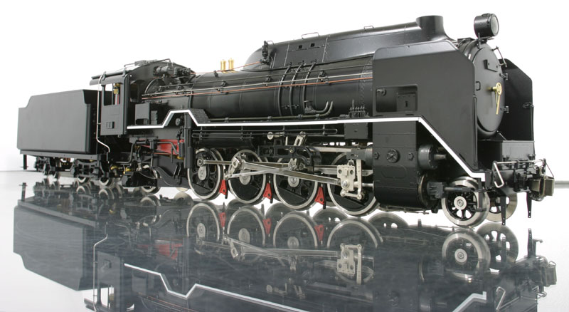 Стоит остановиться на одной конструктивной особенности. Это одна из немногих моделей, оснащенных паровой машиной с цилиндрическими золотниками. Чаще всего по модельным соображениям применяют плоские золотники с наружным впуском пара. Здесь же моделирование высоко поднятых цилиндров прототипа не оставило места для больших золотниковых коробок. Цилиндры модели имеют оригинальную сборную конструкцию. Золотниковый канал не высверливается в массиве цилиндра, а является отдельной частью. Это позволило расположить 6 отверстий каждого парового окон диаметром 2 мм по внутреннему периметру золотникового канала, что значительно уменьшило мятие и конденсацию пара. Сменные тефлоновые кольца золотника обеспечивают долговечную работу модели.