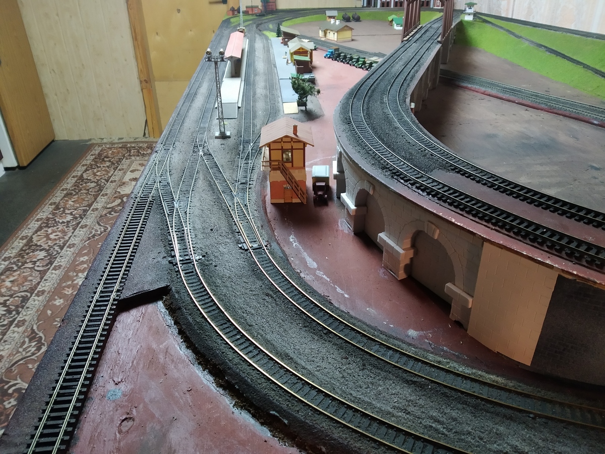 Быстро сделал и приклеилось отлично, следует заметить... 8-) Но для насыпи угол слишком крутой, а изображение укрепления такого откоса счёл занятием нудным. И всё это дело занимает слишком много места, что в районе станции достаточно критично.