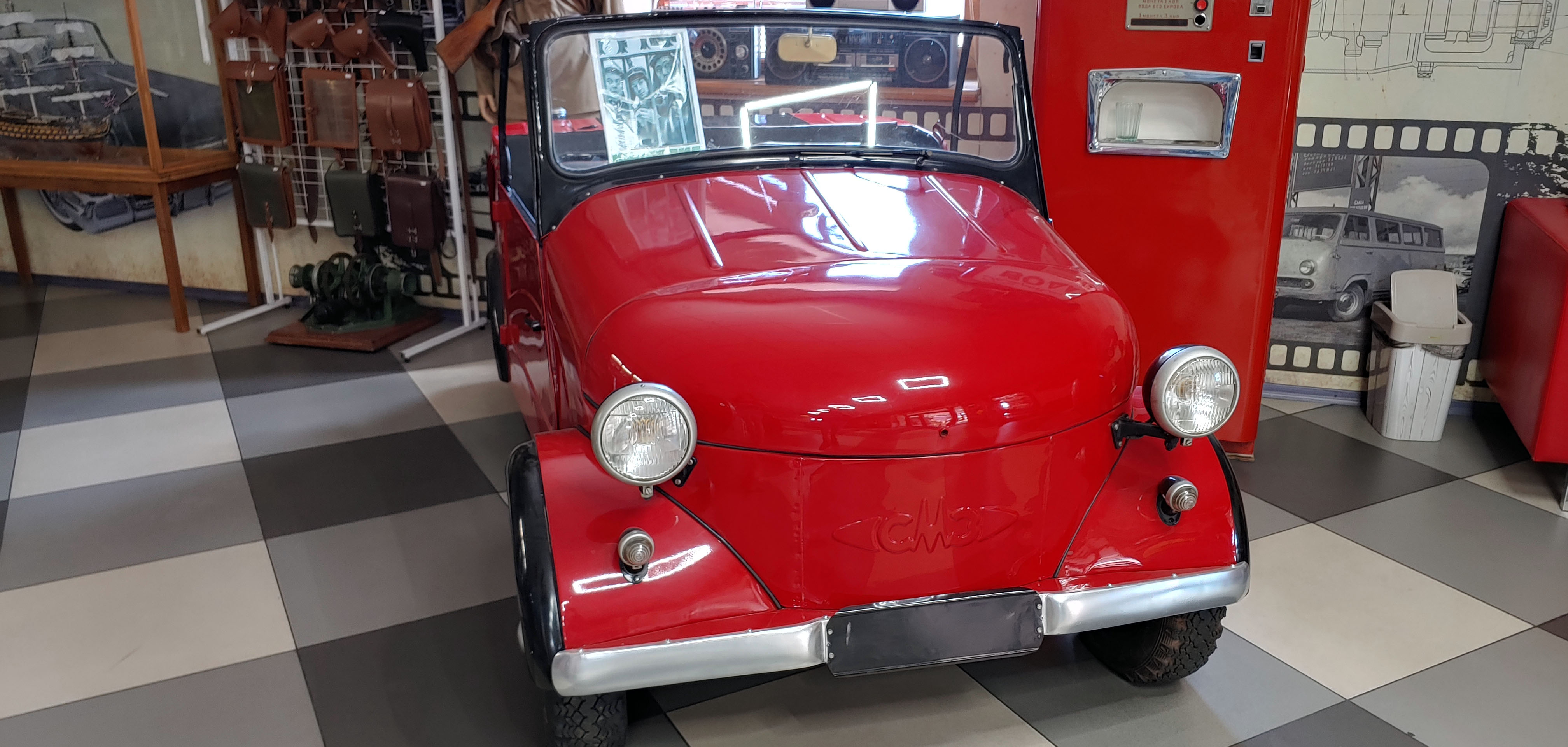 Бензоколонки, а также коляски разных эпох: Самолет и велосипеды: Мотоциклы Знаковые машины ушедшей эпохи: Запорожцы, тут также представлен 10-ти миллионный запорожец без пробега белого цвета, справа только ухо на заднем крыле его виднеется))): Еще мото: Инвалидки, кстати, о существовании 3-колесной красной справая, я до этого момента и не знал, похожа на миньена)))): Общий вид 2 этажа: Ну и ваш покорный слуга в машине из мультфильма фунтик (наверное, я так это понял)))) Я еще наверное с час после посещения музея был в приподнятом духе и улыбался как дурак.....Это реально знаковое место, которое должно быть у нас в стране. И если кто-нибудь из вас будет в Запорожье, обязательно посетите это место......Это просто нечто. Я не могу описать словами......