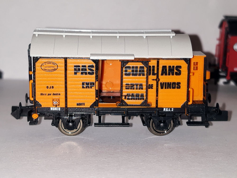 Собственно, созерцание этого, видимо, не встречавшегося в дикой природе, состава, поставило вопрос: а какой же из них соответствует действительности-то? Если в гораздо более позднее время внешне похожие пассажирские вагоны имели выраженные отличия (хотя бы те же silberling, которые строились по лицензии в Польше и имели совершенно другую конструкцию переходной площадки), то в начале XX века вагон, применявшийся R.A. в Италии и Norte в Испании, между которыми больше 1000 километров, а заодно еще и в Баварии, которая далеко в стороне, должен быть таким же массовым, как в свое время G10. Но вино - специфический продукт, массовых перевозок не требует, через весь континент в небутилированом виде не перевозится (не перевозилось). При этом испанский вагон имеет трафареты, с которыми он вряд-ли мог бы быть допущен в Пруссию или КуК-империю. Конечно, его могли строить по лицензии, но в Испании, ко всему прочему, много где отличается колея (а подвижной состав иберийской колеи имеет, соответственно, иные пропорции)... В общем, наличие такого количества перекрасов заставило сесть и покопаться немного в теме, интересной, но совершенно не знакомой.