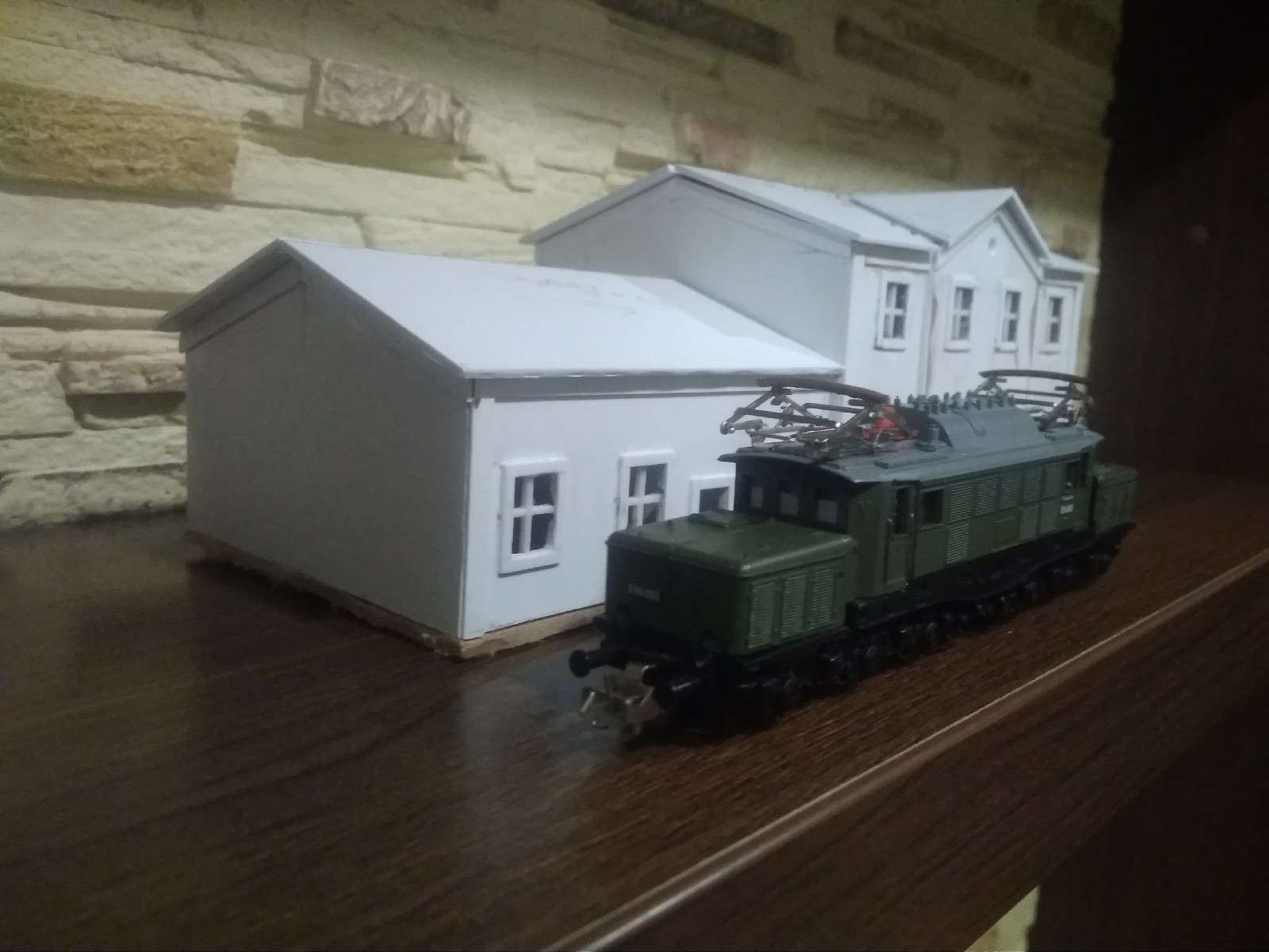 Ну що ж, перший сезон серіалу про мій макет добіг кінця. Завтра він переїде в гараж, де чекатиме наступного наскоку. Але це не означає що тема заглохне - думаю зайнятися будівлями, заготовкою матеріалів, а також теорією :) А зараз поставив його на місце де він має жити. Здоровий, падло :) Перегон на насипі над руслом ріки думаю буде круто виглядати, я, як любитель пофотографувати поїзди, думаю що це місце в реалі забаянили б вздовж та поперек. Пару фото додається, вибачте за якість, темно. Цього разу в головній ролі древній"цойкозавр" BR23.