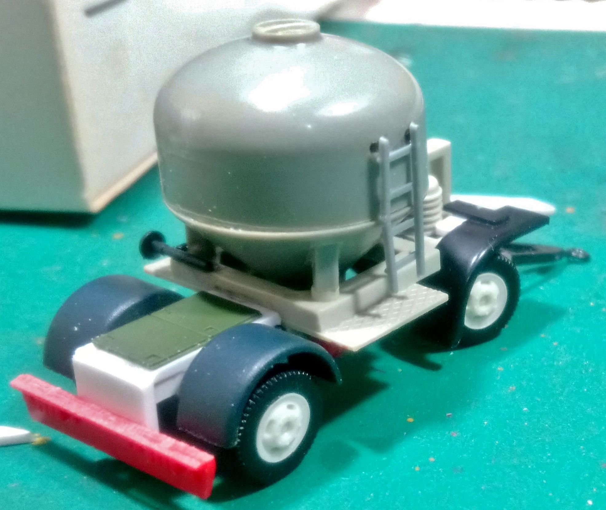 наличии в ГДР масс рефрижераторных автовозов ,захотелось и себе такое. Правда в наличии был только старенький цементовоз от Permot. Ампутировал бункер и устаканил седло.В процессе манипуляций отпала кабина.