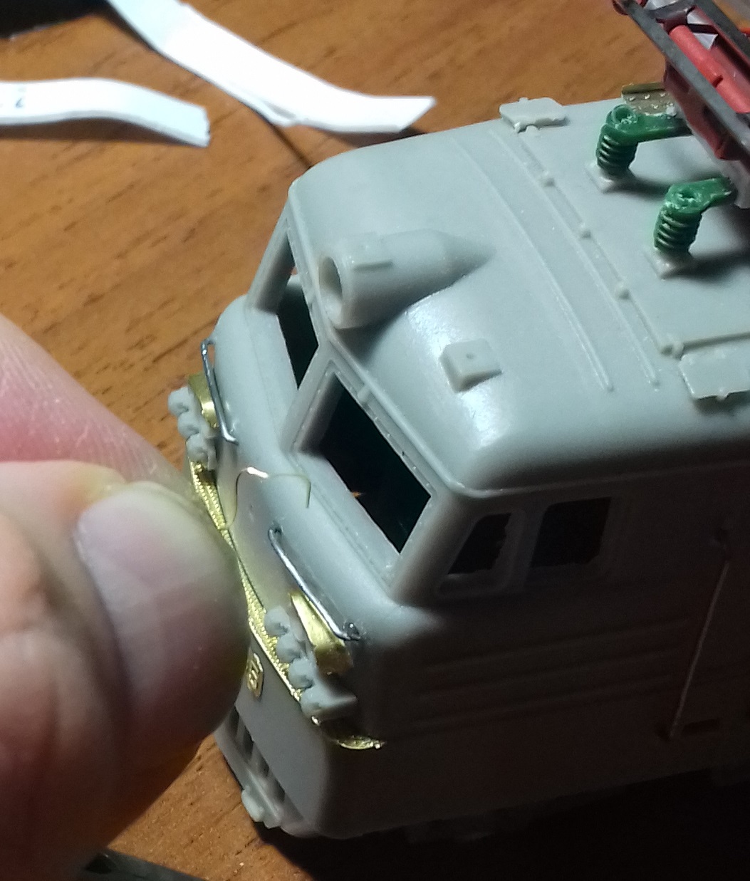 На крыше локомотива имеется змеевик для охлаждения воздуха. Формы весьма своеобразной, потому производитель постарался помочь - среди деталей есть приспособление-шаблон, позволяющее выгнуть проволоку в нужную конфигурацию.