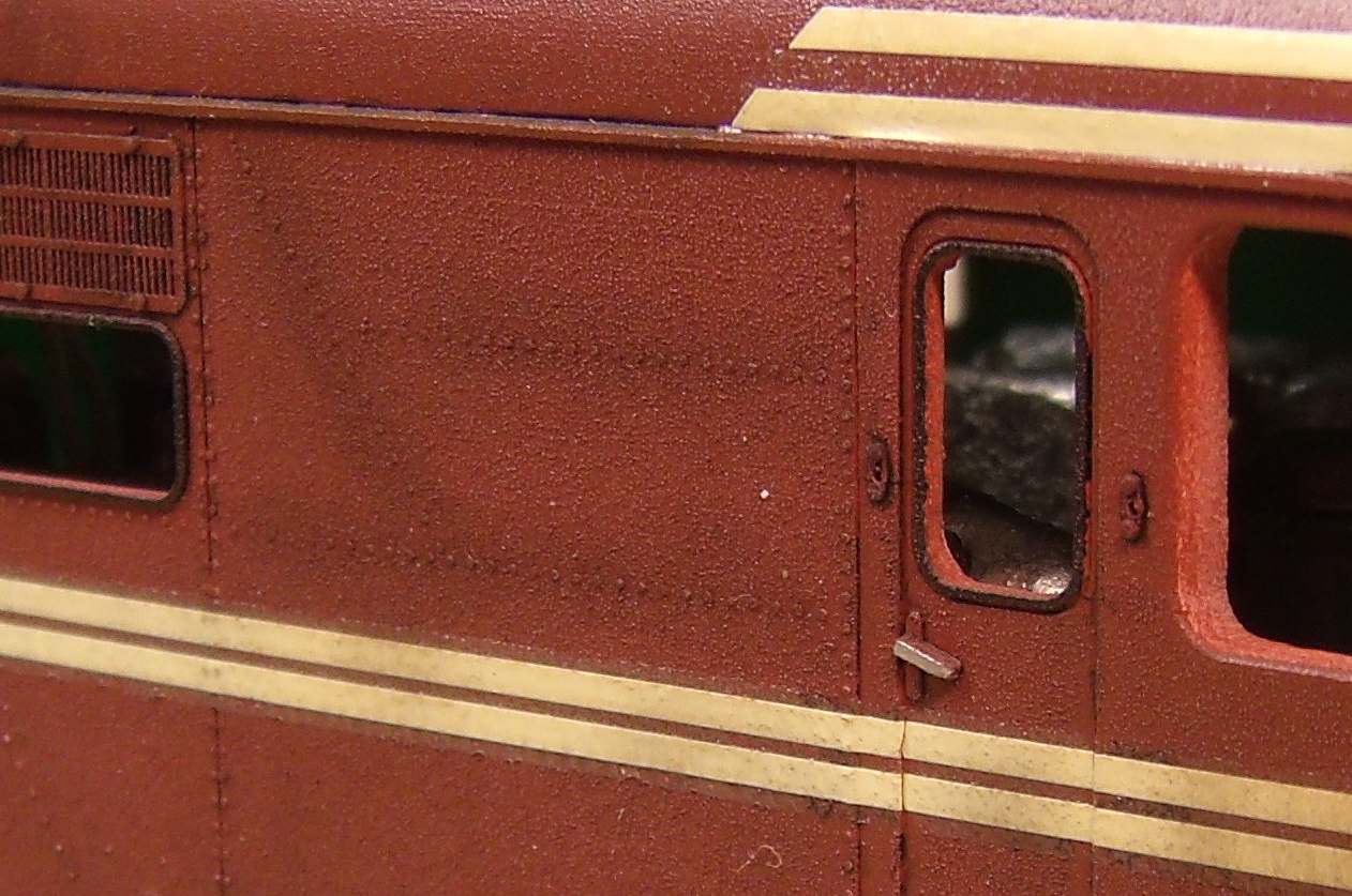 Ставили мы перед собой задачу делать машину "в повседневной эксплуатации", вот как получилось... Лично меня больше всего ошеломляют до восторга потёки с крыши к водостоку, они как бы доказывают зрителю стопроцентно что это не просто выделенные смывкой детали, а именно художественно нарисованные элементы, как на картине, которые связывают всё вместе, и создают ощущение действующего тепловоза...