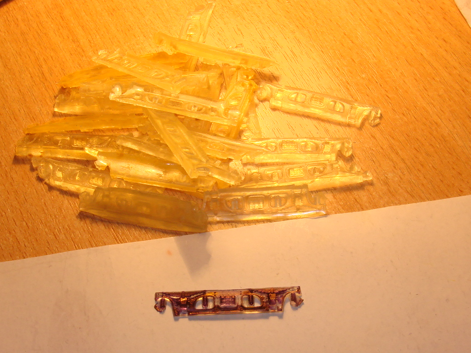 Далее дело было уже так. Металл 0,5 мм. Для примерки в интерьере просто поставил вагон сверху.youdmit писав:Первая партия на один вагон после обработки выглядит так.