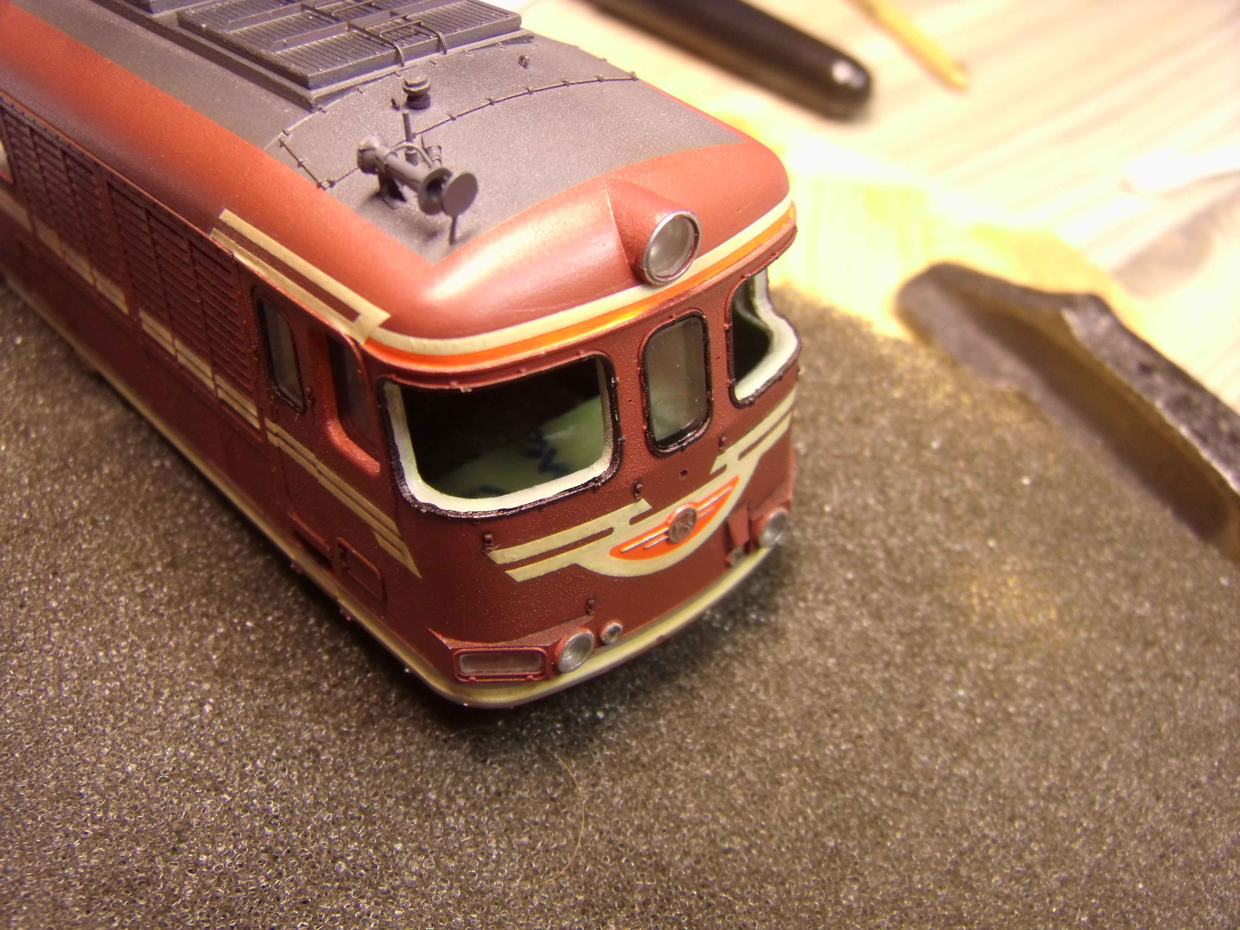 Процесс... сопровождался редкими неприятными сколами краски... труднее всего было установить стёкла буферных фонарей, особенно маленьких, и прожектора... а легче всего стёкла на крыше...