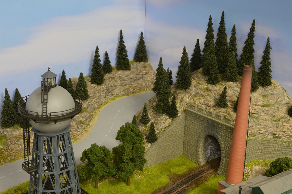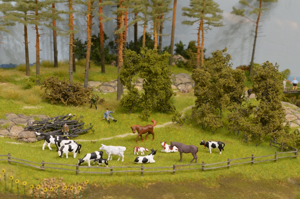 4. На альпийском участке: сделал туннель, шоссе, скалы, горы, посадил траву, елочки, кусты (пока не везде...), установил домики и даже немного людей и животных.